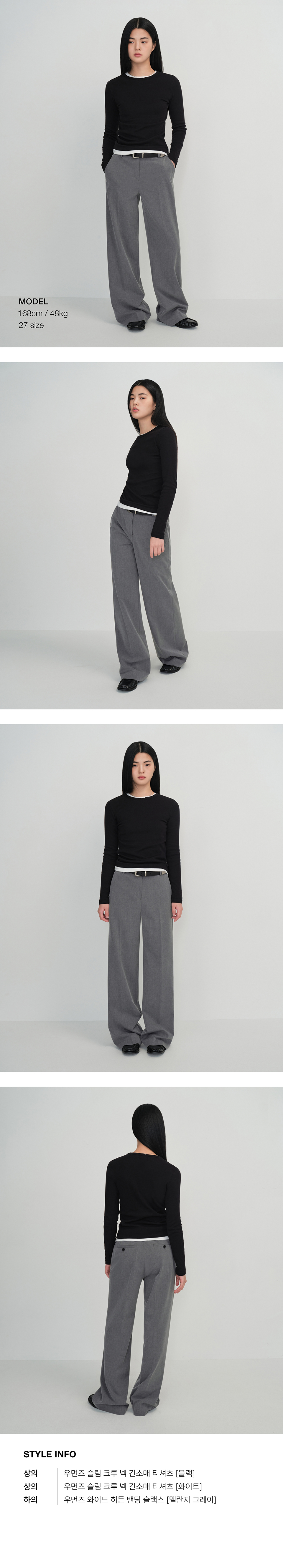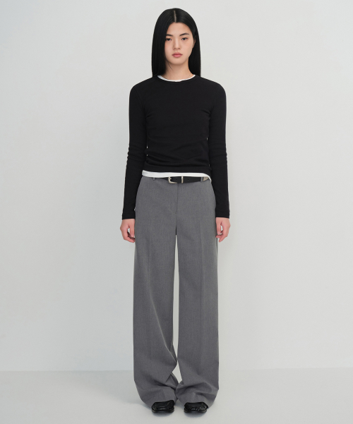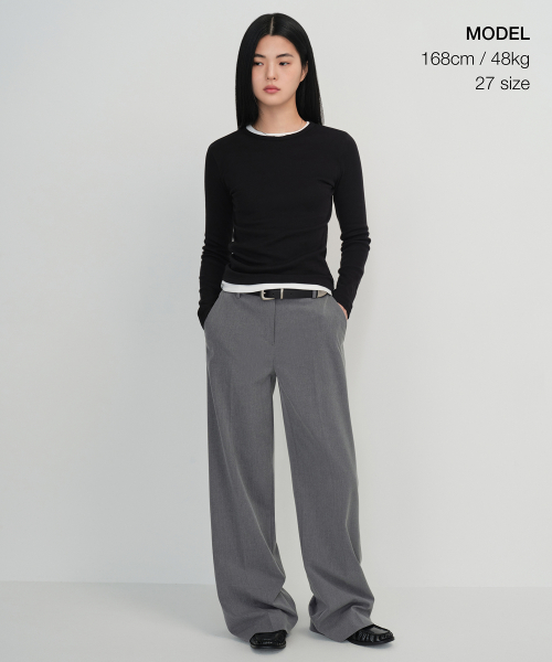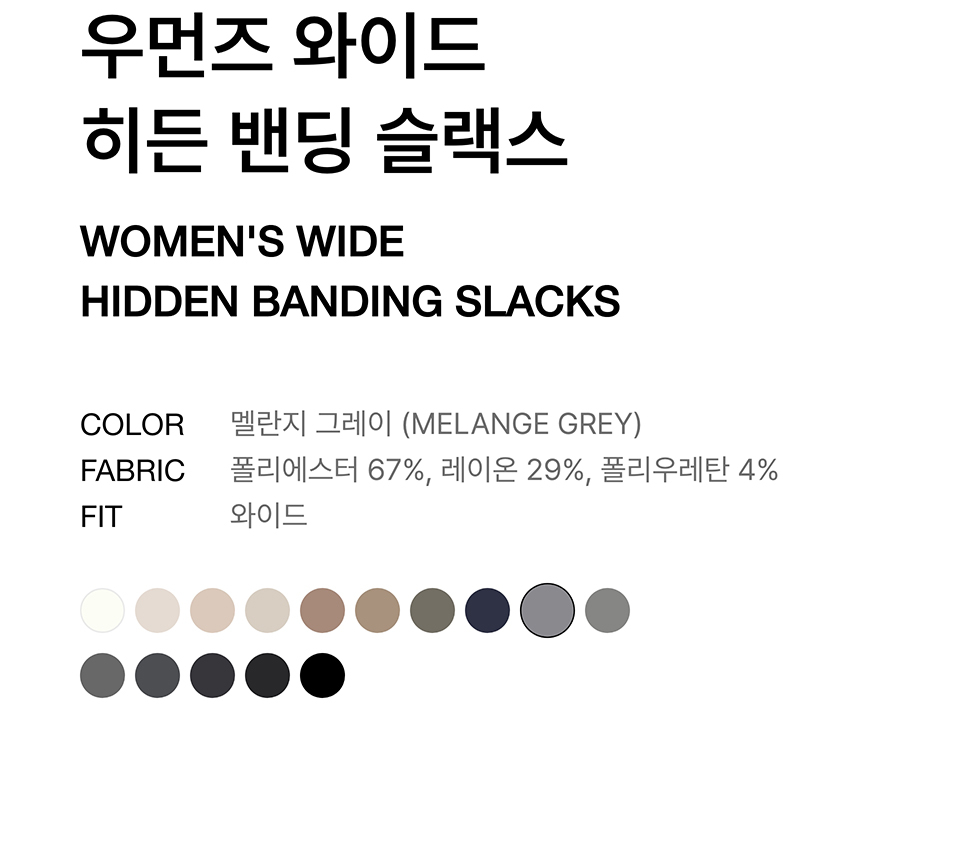 우먼즈 와이드 히든 밴딩 슬랙스 [멜란지 그레이]