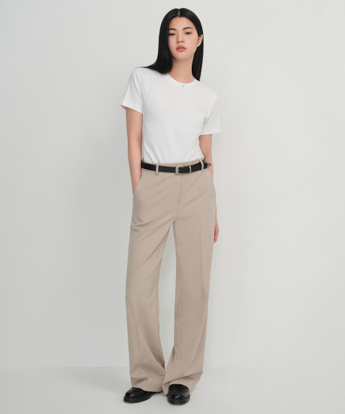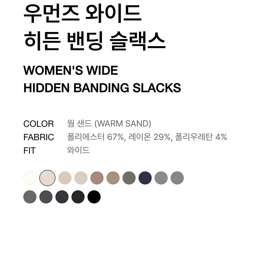 우먼즈 와이드 히든 밴딩 슬랙스 [웜 샌드]