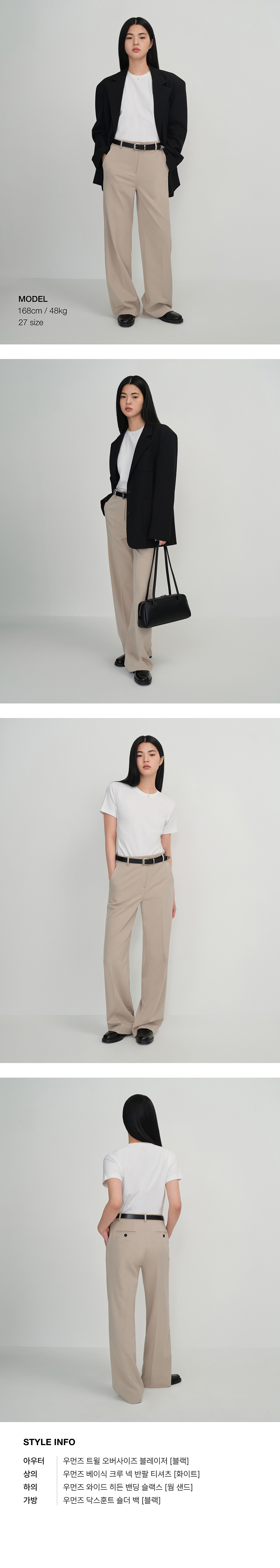 우먼즈 와이드 히든 밴딩 슬랙스 [블랙]