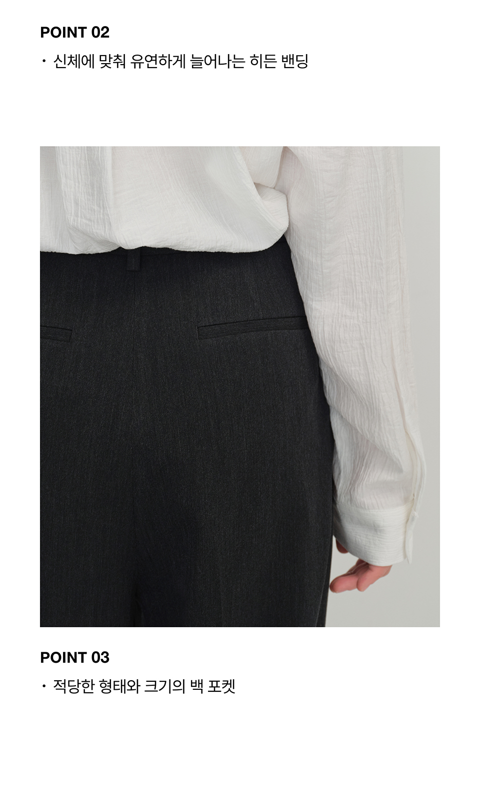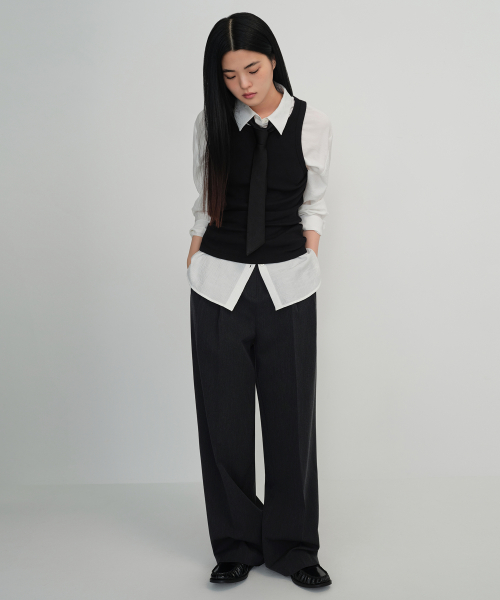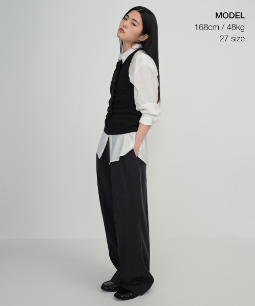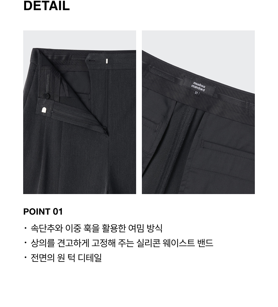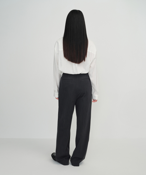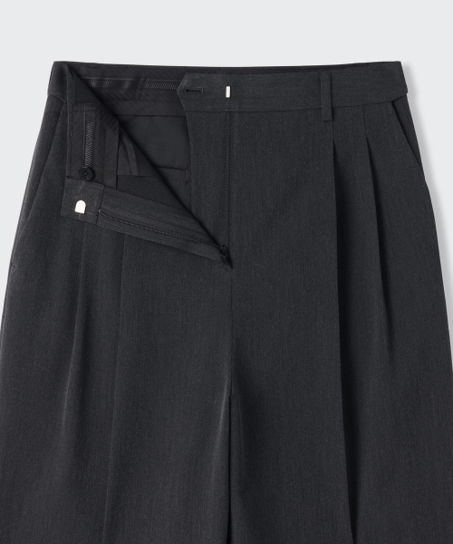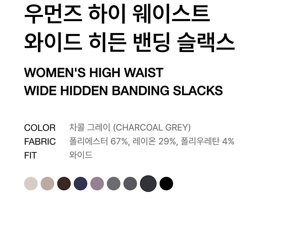 우먼즈 하이 웨이스트 와이드 히든 밴딩 슬랙스 [차콜 그레이]