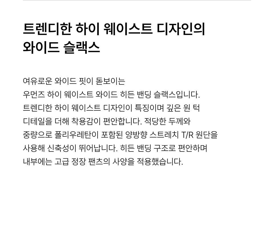 우먼즈 하이 웨이스트 와이드 히든 밴딩 슬랙스 [블랙]