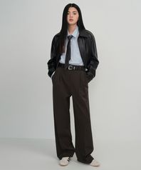 우먼즈 하이 웨이스트 와이드 히든 밴딩 슬랙스 [다크 브라운]