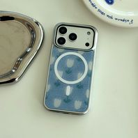 [범퍼실버]부직포 화이트 플라워 맥세이프 폰 케이스