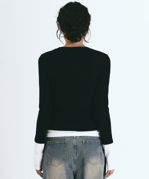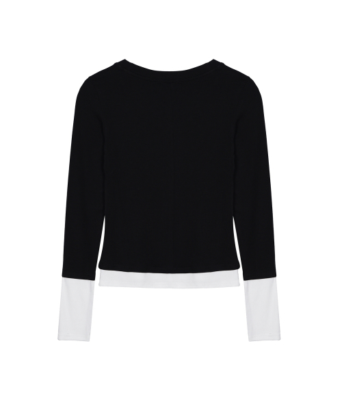 LAYERED PINTUCK LONG SLEEVE TOP_BLACK