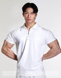 와이드숄더 하프집업 머슬핏 폴로셔츠 (스노우화이트)