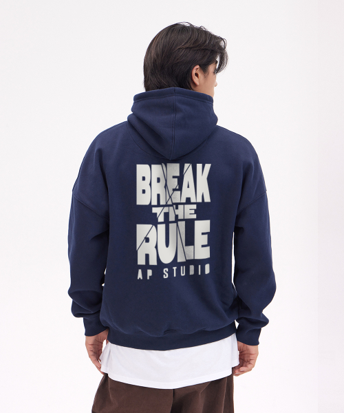 브레이크 더 룰 오버핏 와이드 숄더 후디_네이비