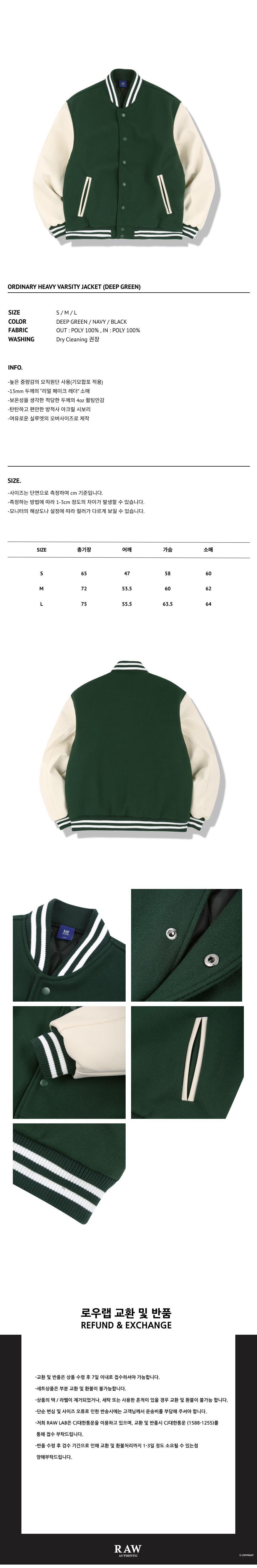 오디너리 헤비 바시티자켓 (딥 그린)