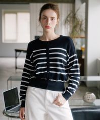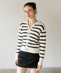 울 블로킹 스트라이프 니트 가디건