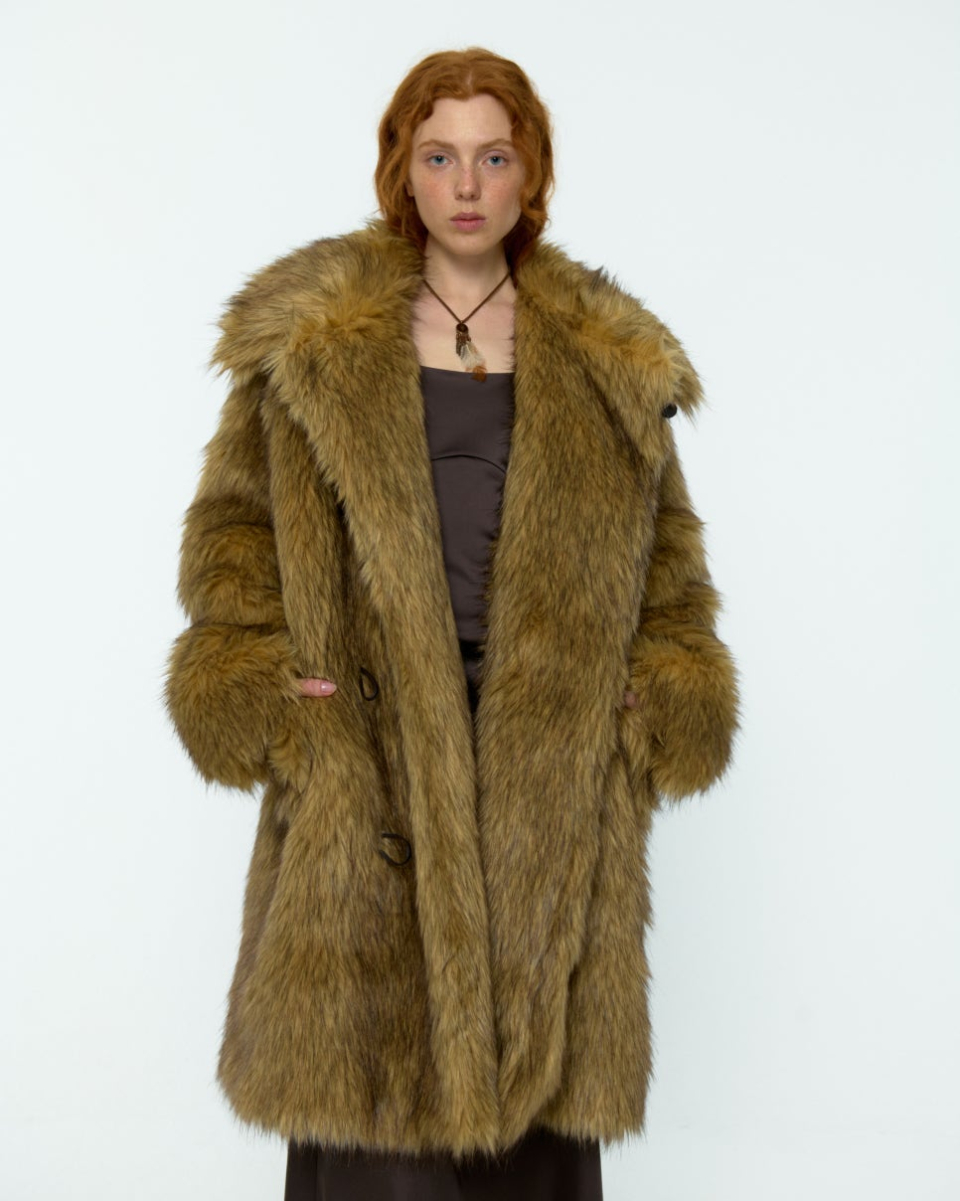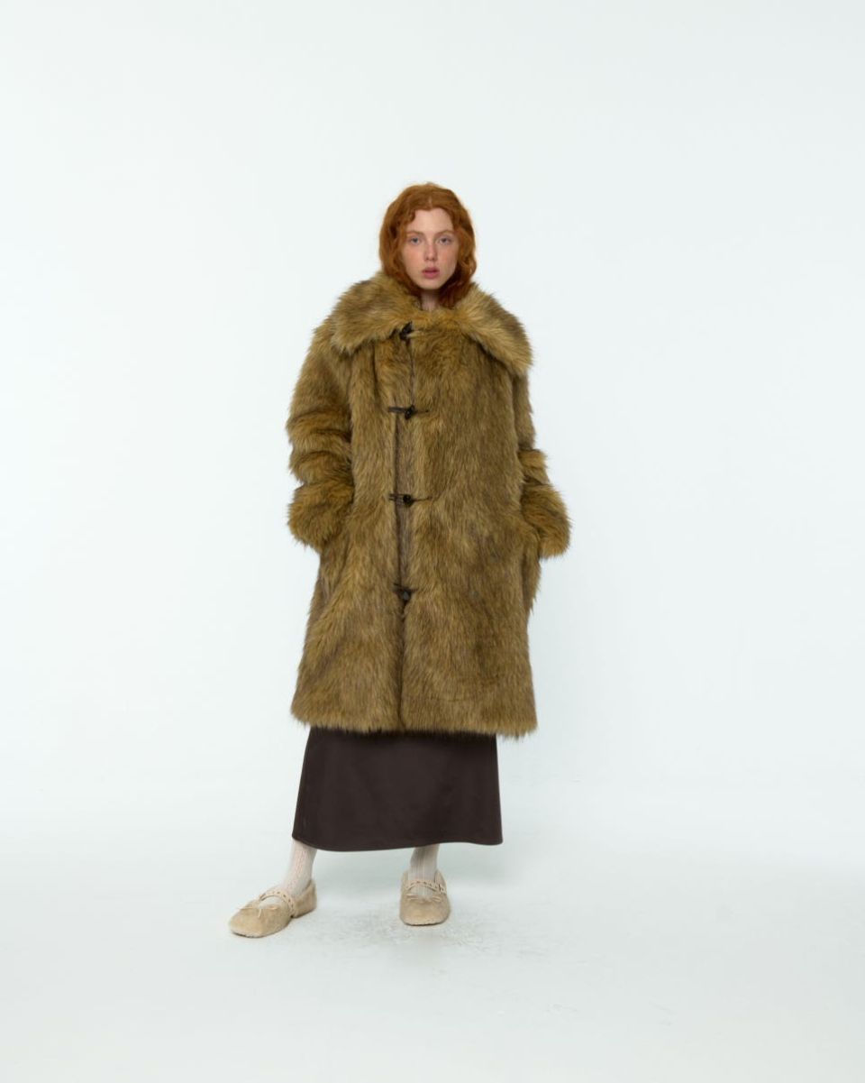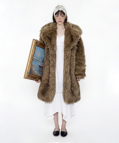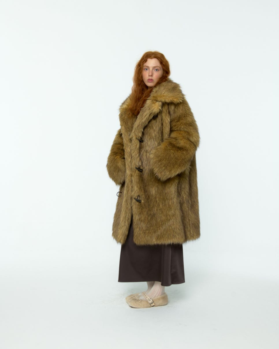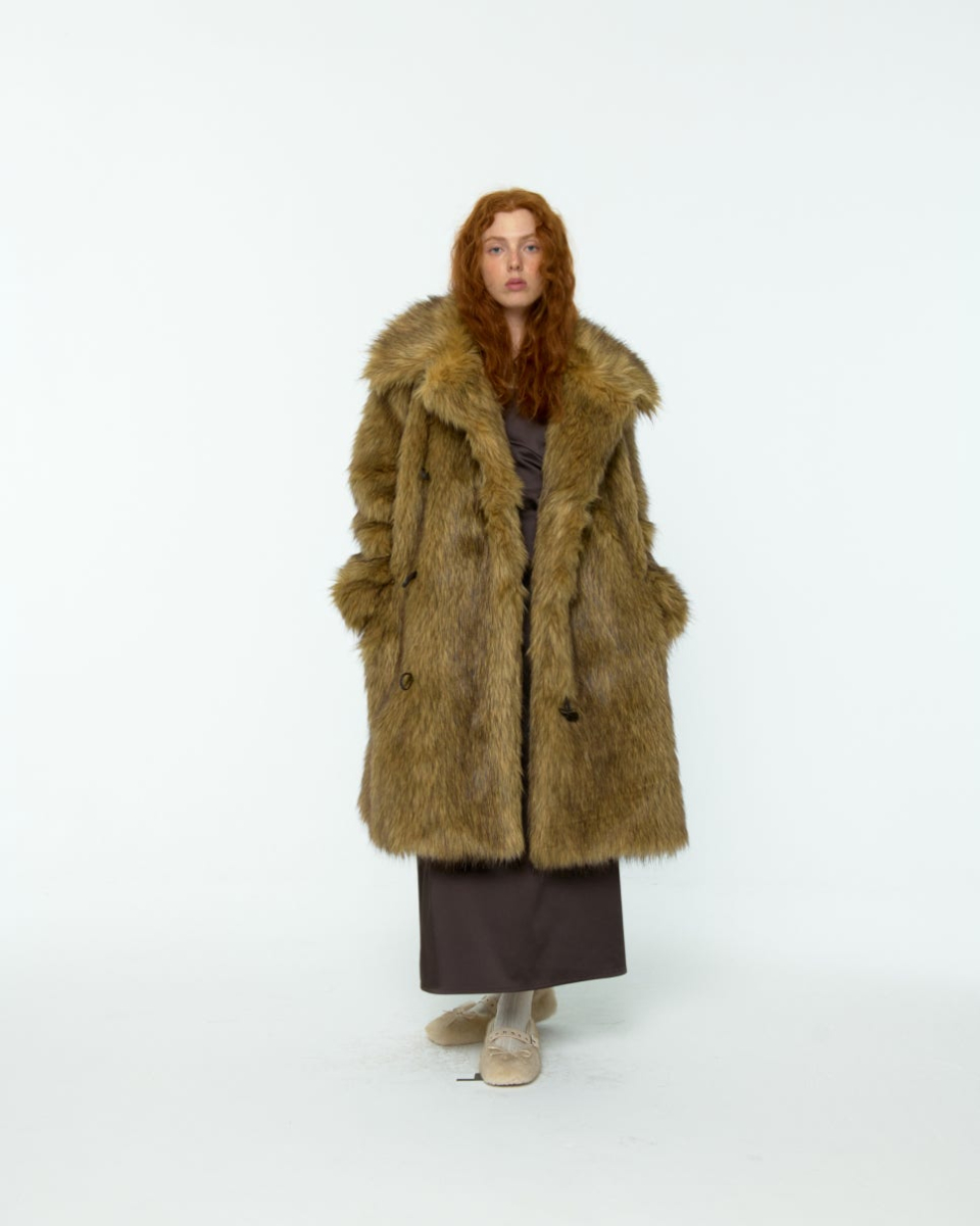 8-90년대의 퍼 자켓 아카이브에서 영감받아 제작된, 브라운 컬러가 매력적인 롱 헤어 퍼 자켓입니다.