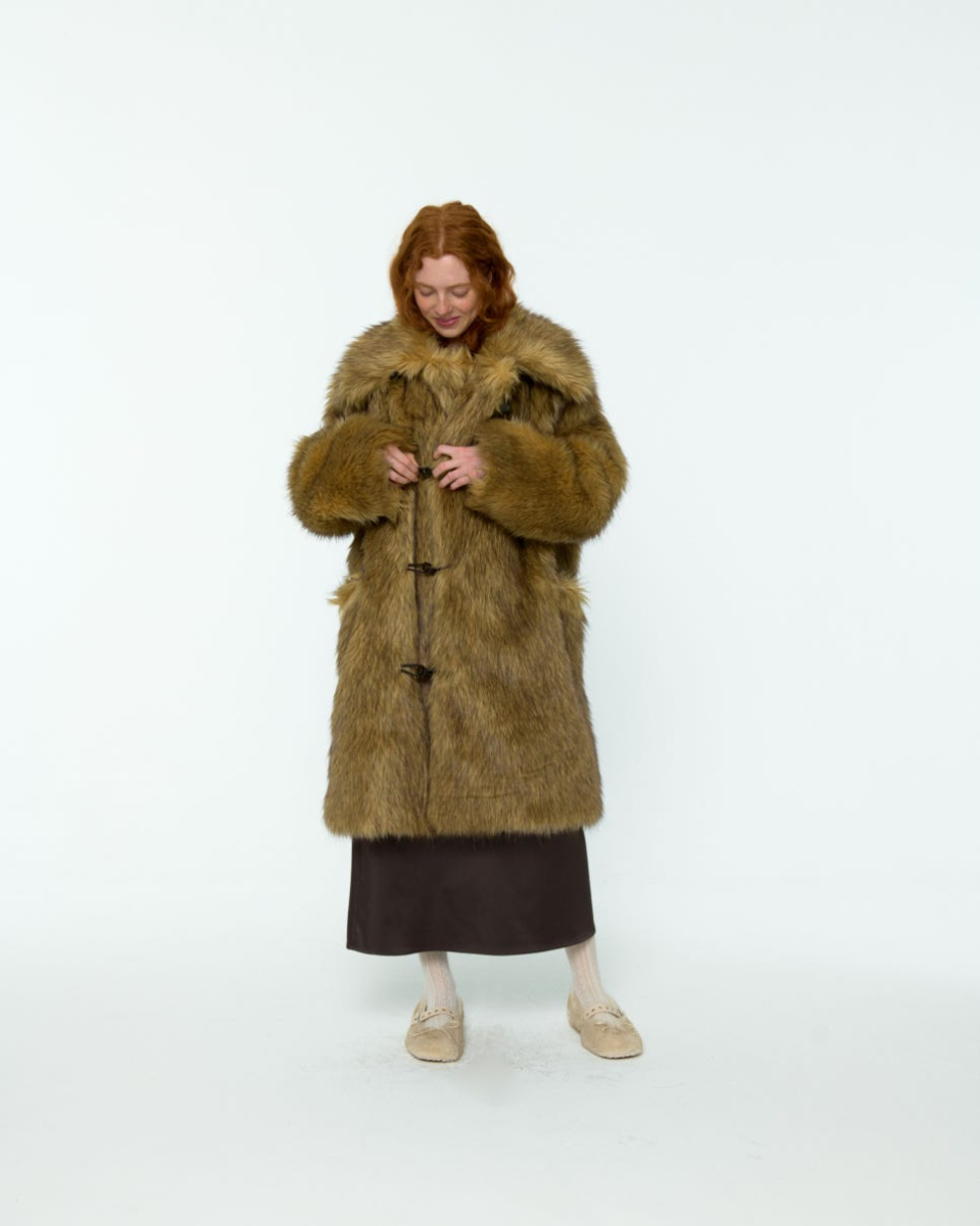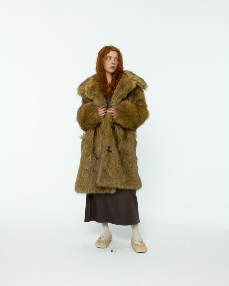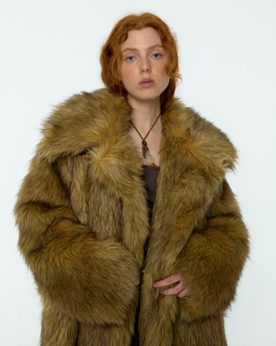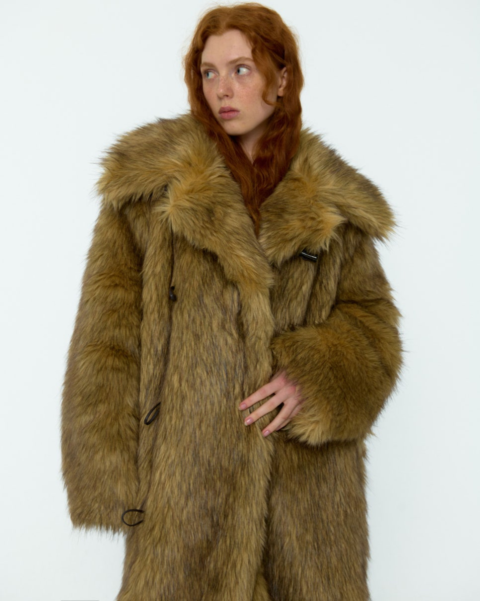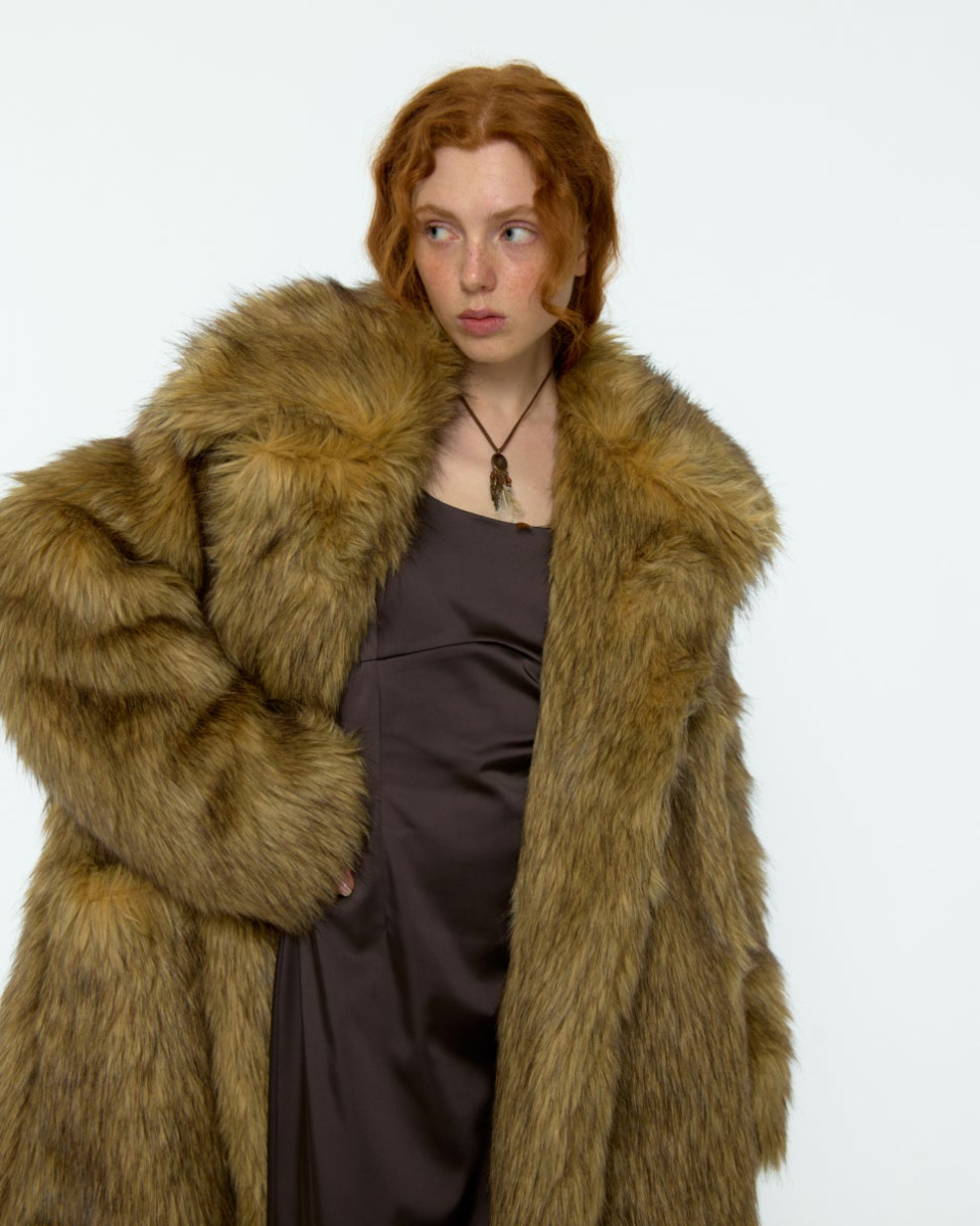 8-90년대의 퍼 자켓 아카이브에서 영감받아 제작된, 브라운 컬러가 매력적인 롱 헤어 퍼 자켓입니다.
