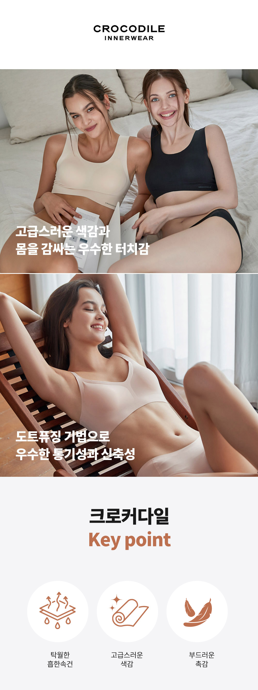 크로커다일 이너웨어(CROCODILE INNERWEAR)의 시그니처 심리스 라인은 날아갈 듯 가볍게, 안 입은 듯 편안하게 그리고 매일 아침의 상쾌함을 선사하는 데일리 언더웨어 브랜드입니다.