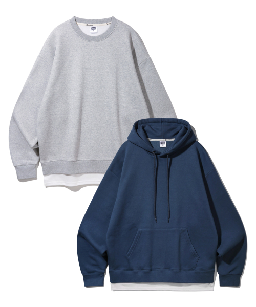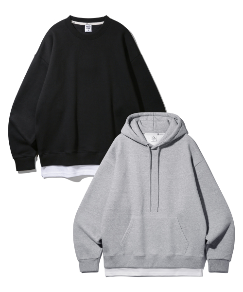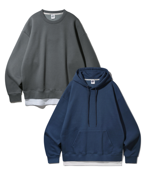 레이어드 오버핏 맨투맨 후드티 2종 택1