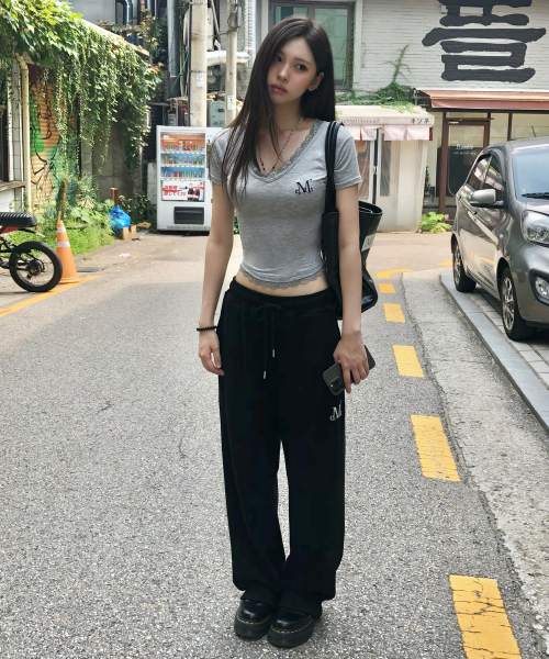 래쉬 메탈 로고 조거 스웻 와이드 팬츠 (4컬러)