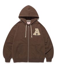 AECA COLLEGE A FULL ZIP UP HOODIE-BROWN
