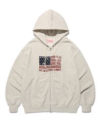 EASY & FREE FLAG ZIP UP HOODIE-OATMEAL