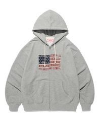EASY & FREE FLAG ZIP UP HOODIE-GREY