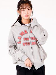LA MAISON ESSENTIAL CROP ARCH LOGO HOODIDIE ZIP-UP MELANGRAY(FCG1ZP684M)