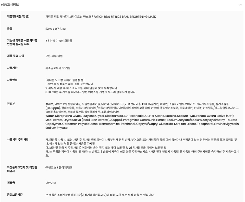 리얼 핏 쌀겨 브라이트닝 마스크(10매입)