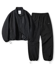 [SET UP] OVERFIT 2WAY ZIP-UP & STRAIGHT or JOGGER SEWATPANTS - BLACK