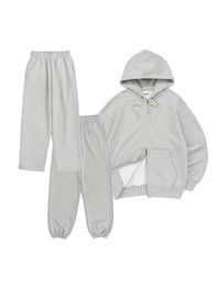 [SET UP] OVERFIT 2WAY ZIP-UP & STRAIGHT or JOGGER SEWATPANTS - MELANGE