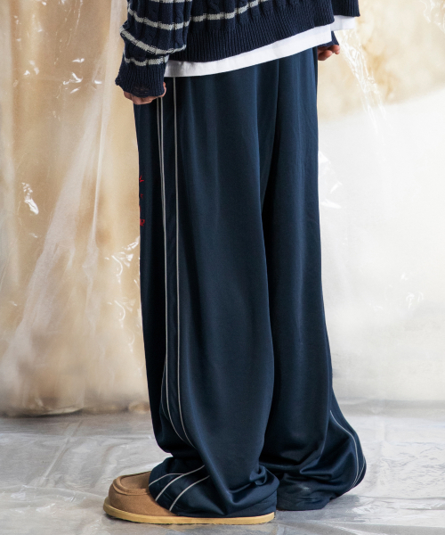XP260 샤인 파이핑 와이드 트랙 팬츠 (NAVY)
