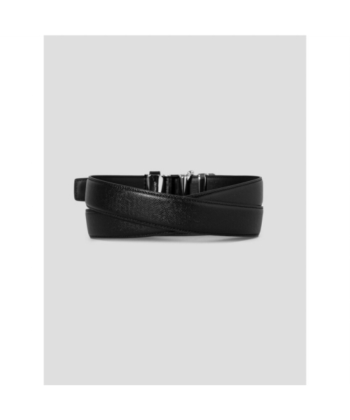 브랜드 로고가 들어간 자동 금속 버클로 포인트를 준 벨트입니다. 천연 소가죽과 합성 가죽을 스트랩 앞뒤로 적용하여 내구성이 뛰어납니다. 은은하고 멋스러운 디자인으로 깔끔한 포멀룩을 연출할 수 있습니다.