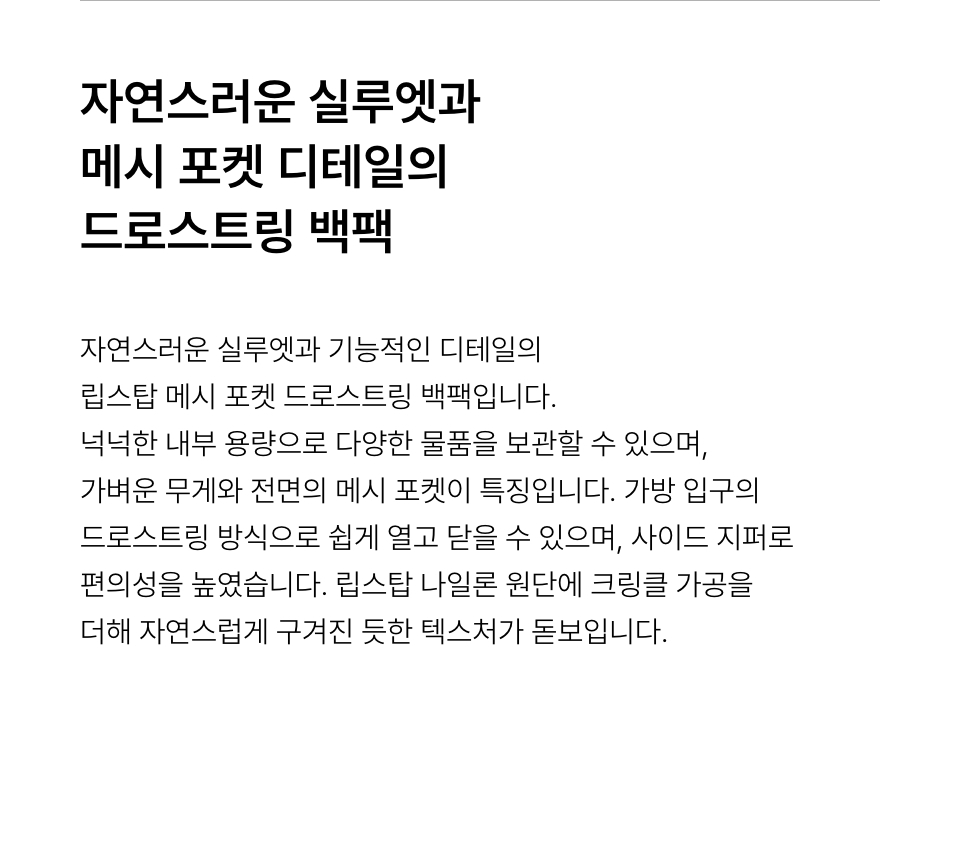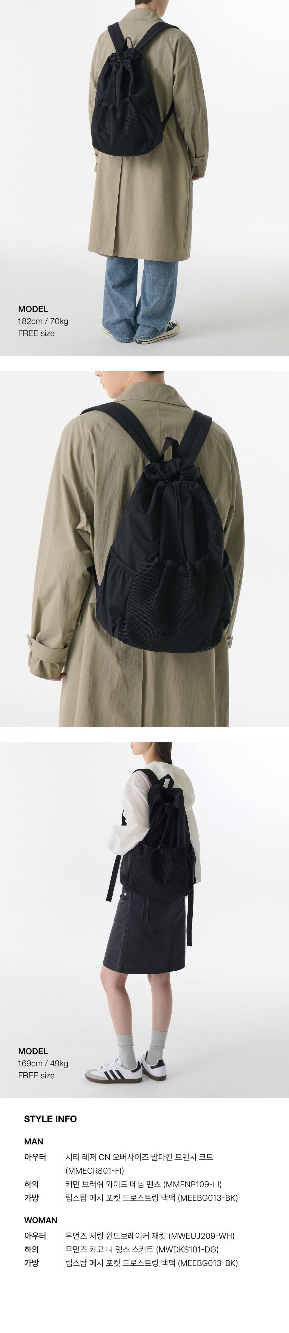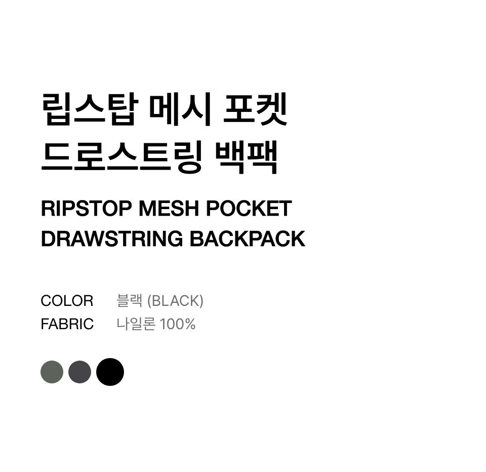 립스탑 메시 포켓 드로스트링 백팩 [블랙]