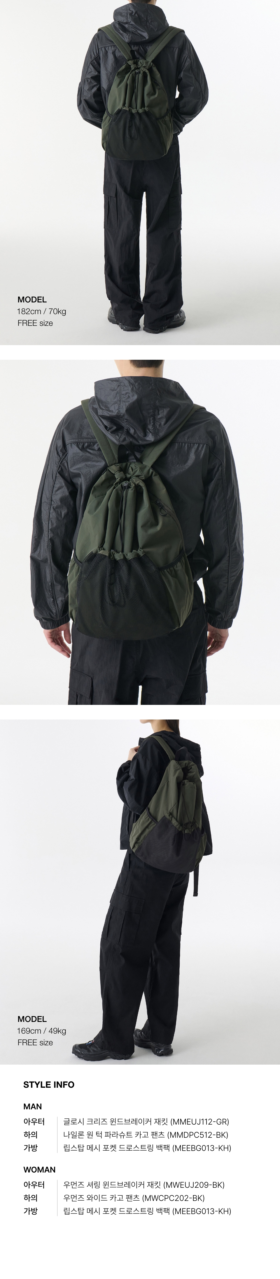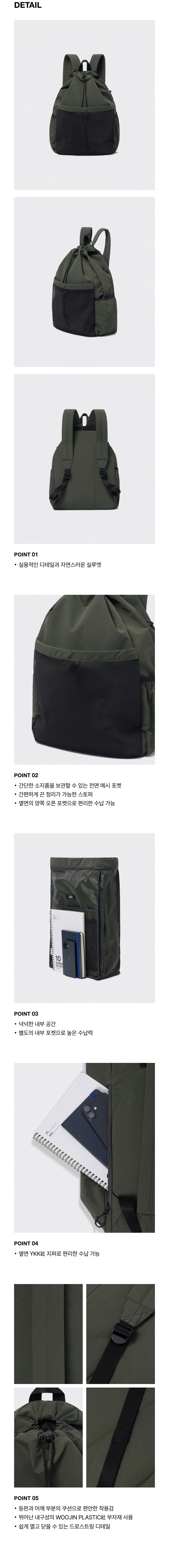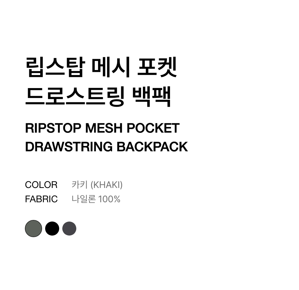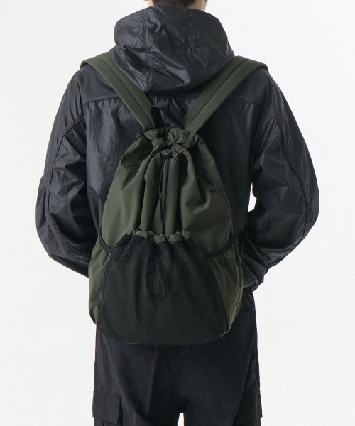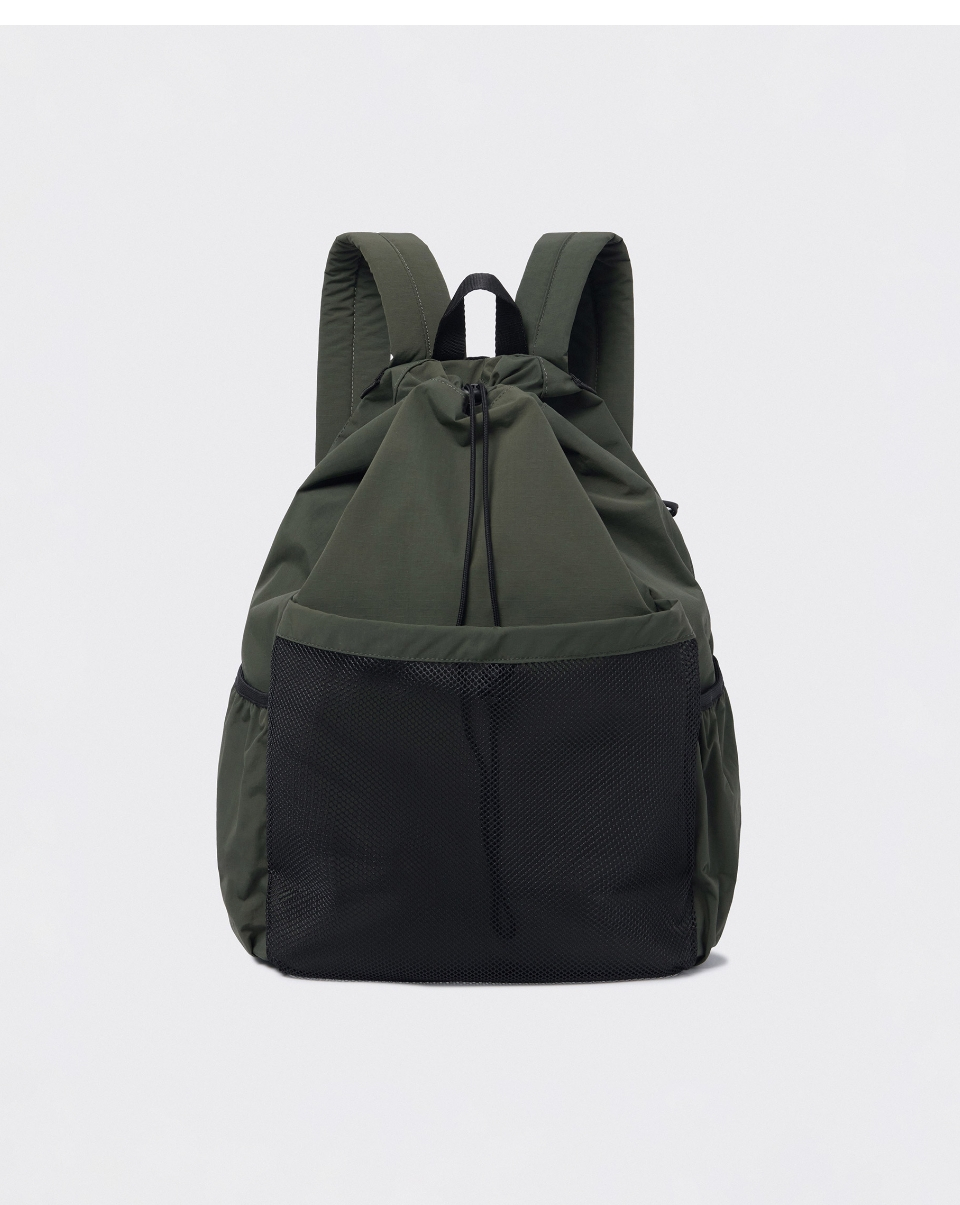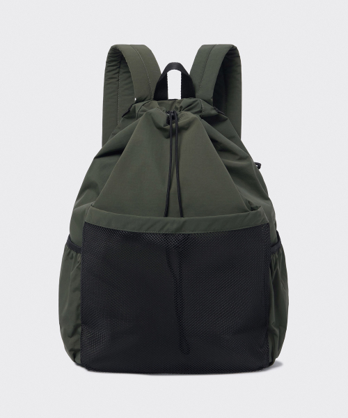 립스탑 메시 포켓 드로스트링 백팩 [카키]