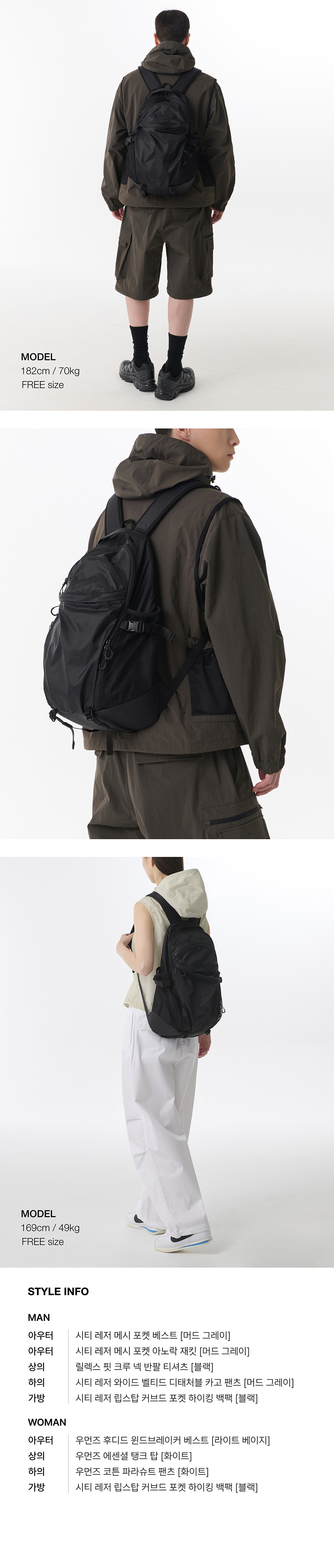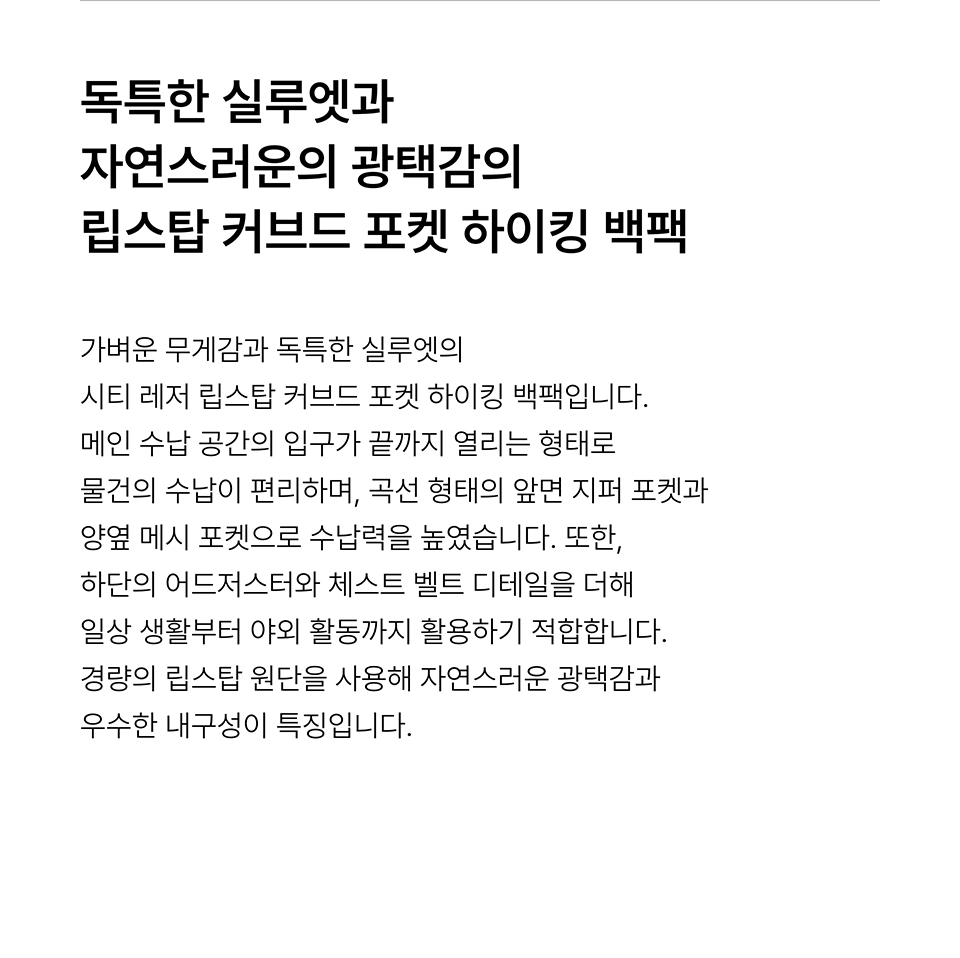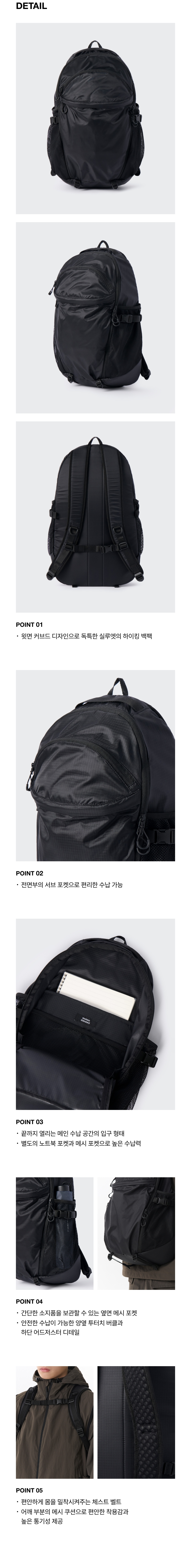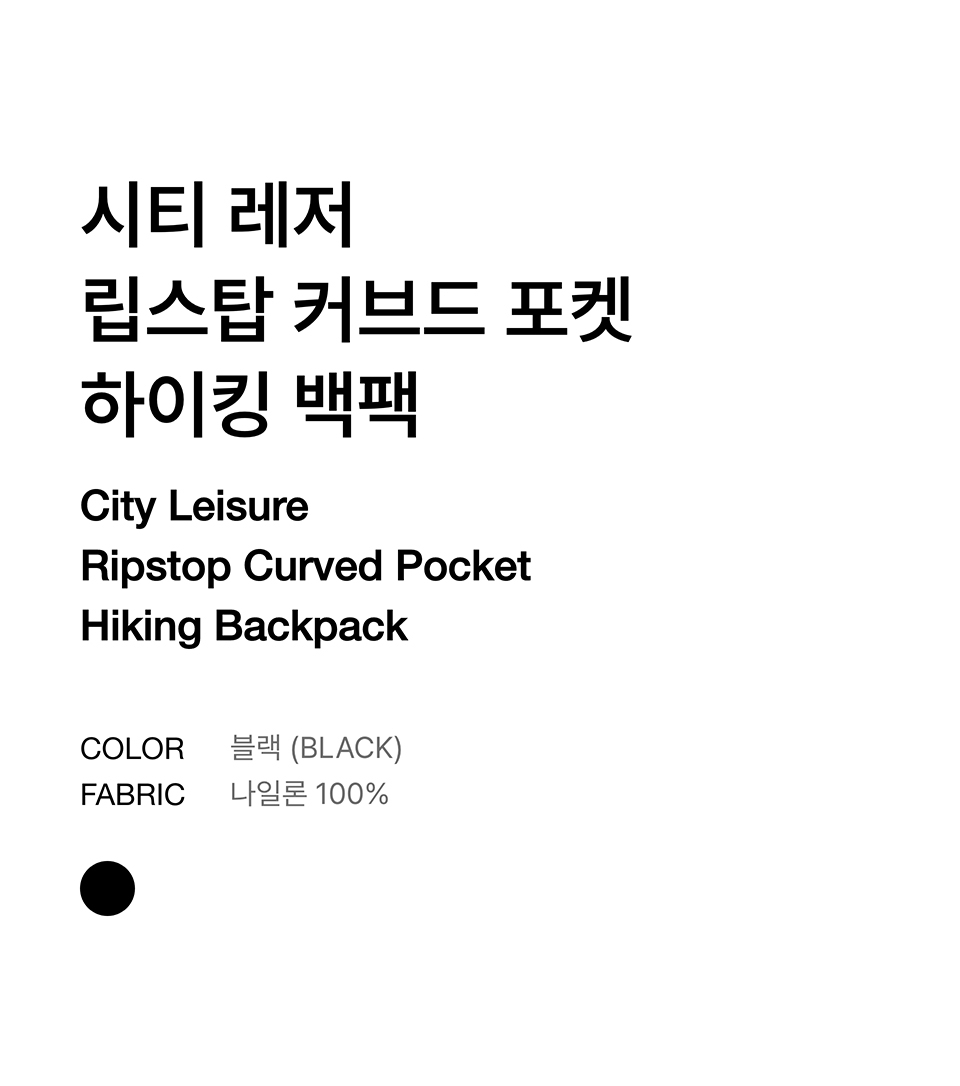[시티 레저] 립스탑 커브드 포켓 하이킹 백팩 [블랙]