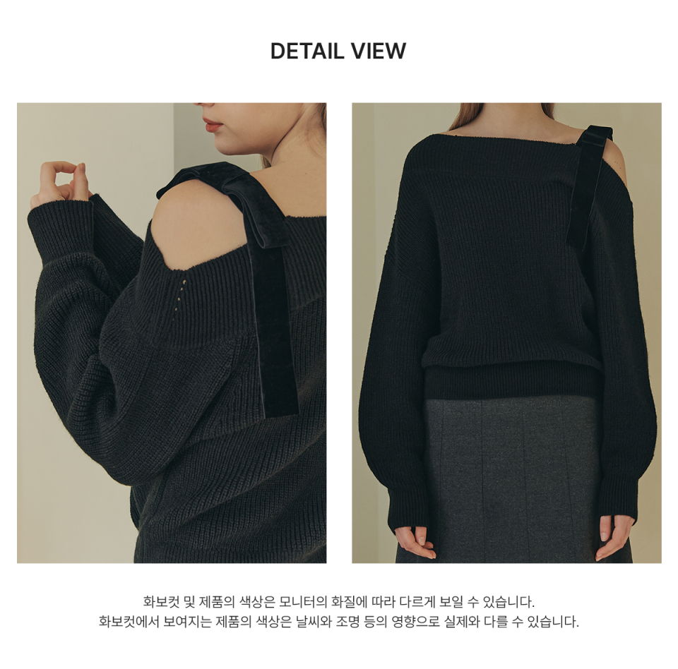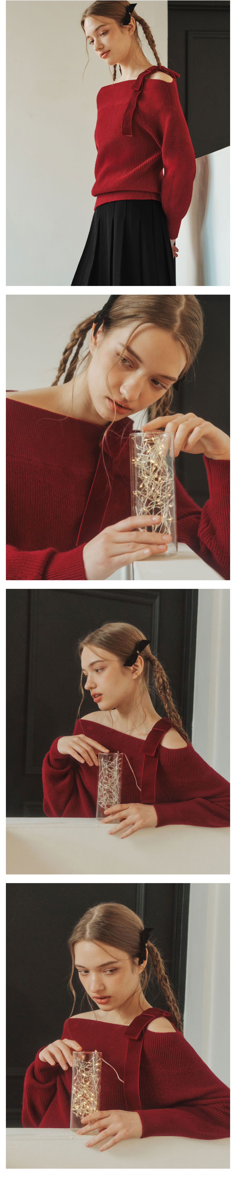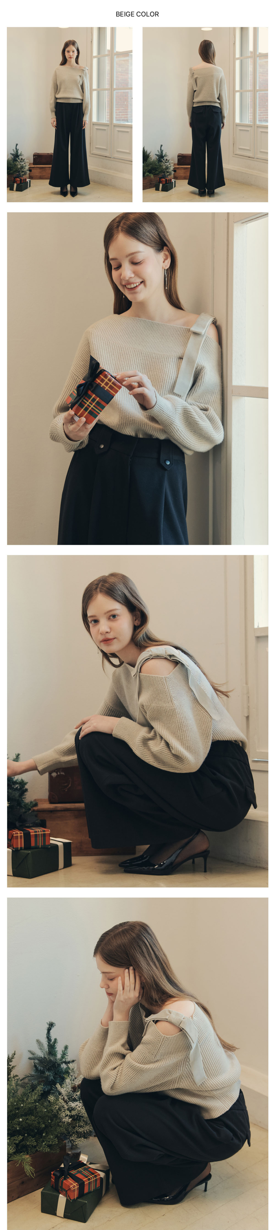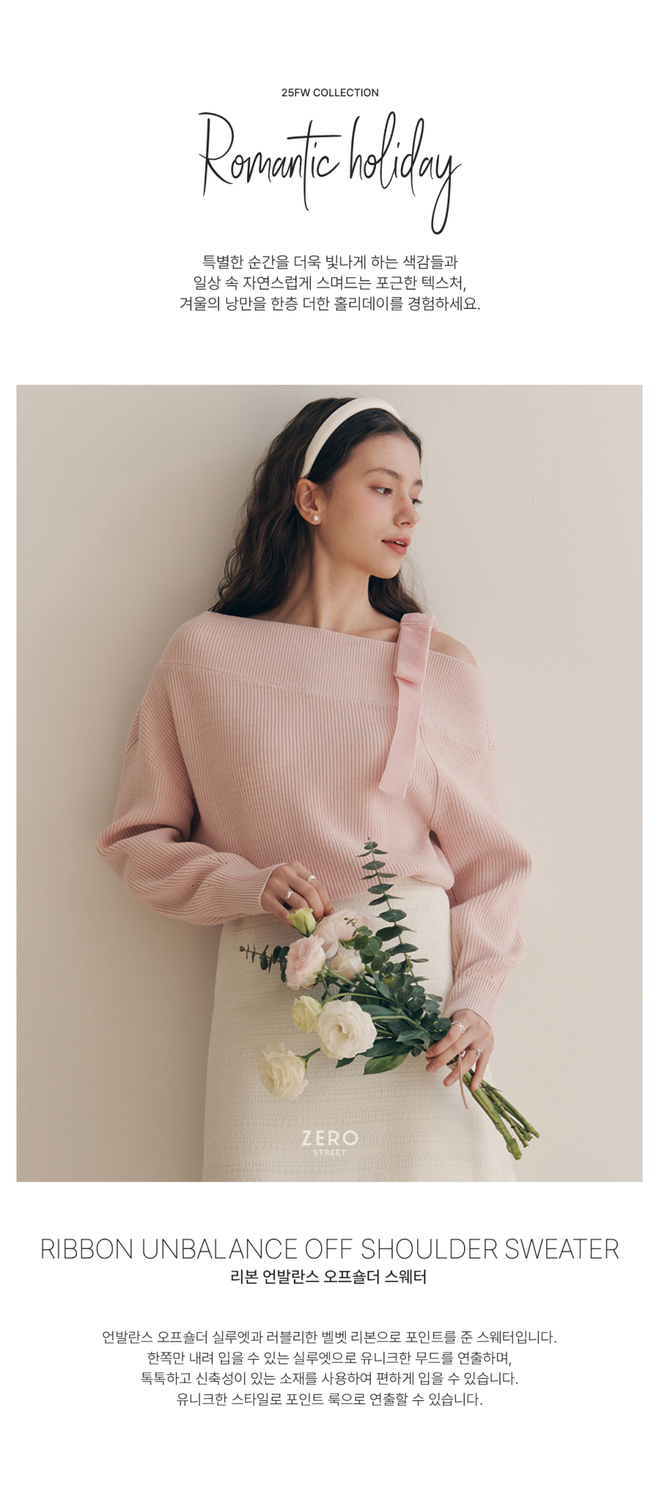 [4컬러] 리본 언발란스 오프숄더 스웨터