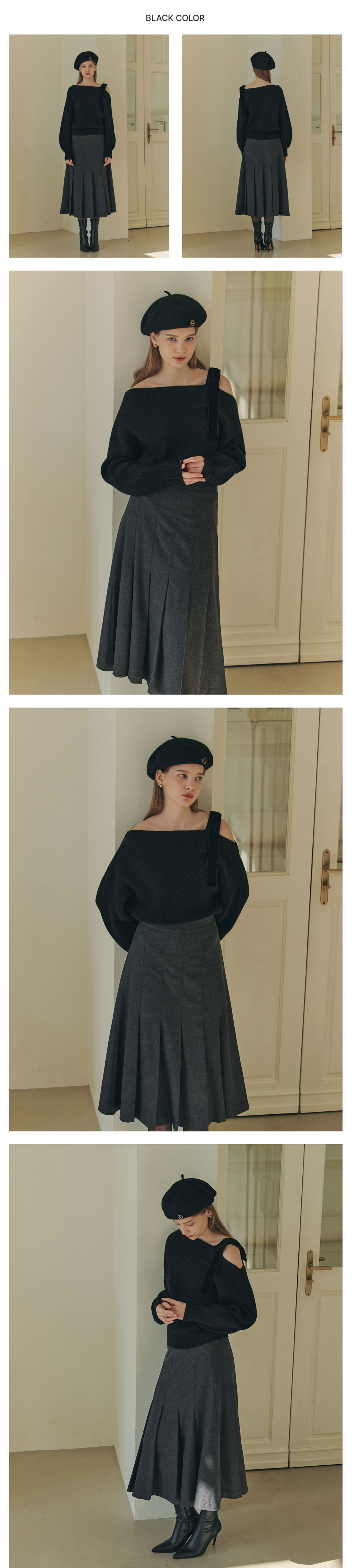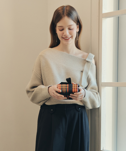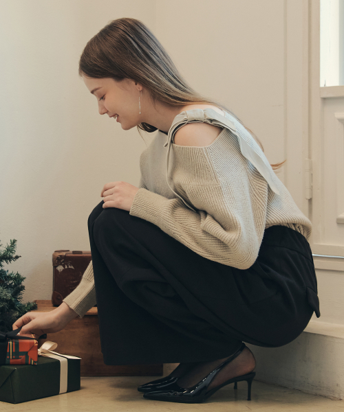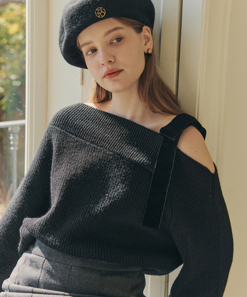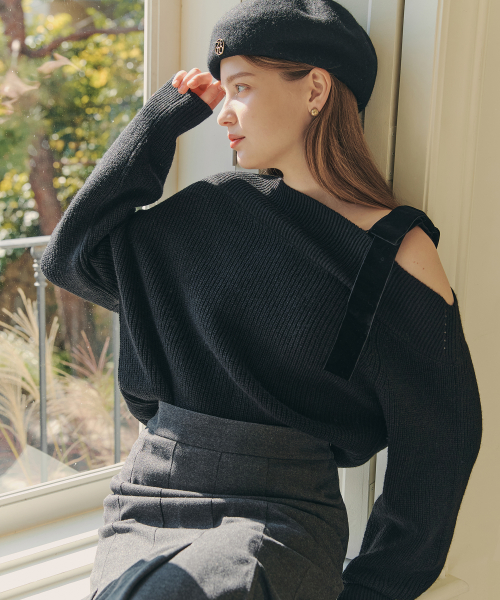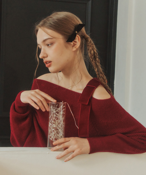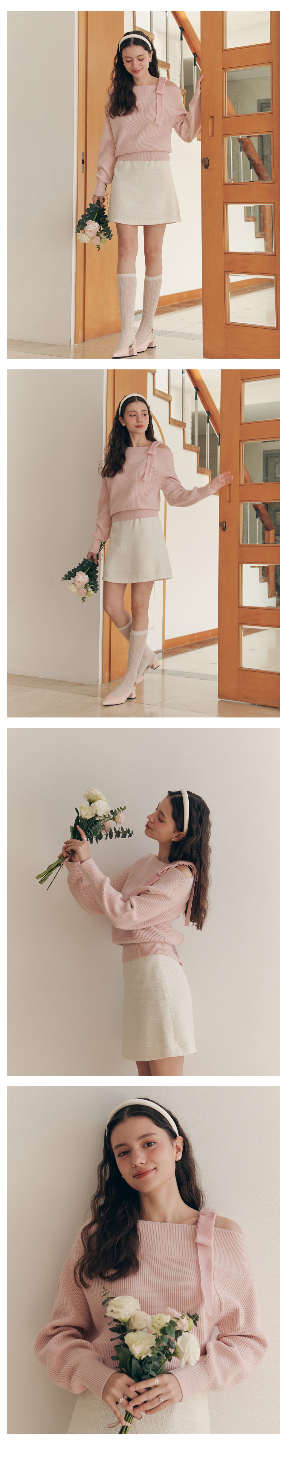 [4컬러] 리본 언발란스 오프숄더 스웨터