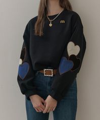 하트 와펜 라운드넥 맨투맨 티셔츠