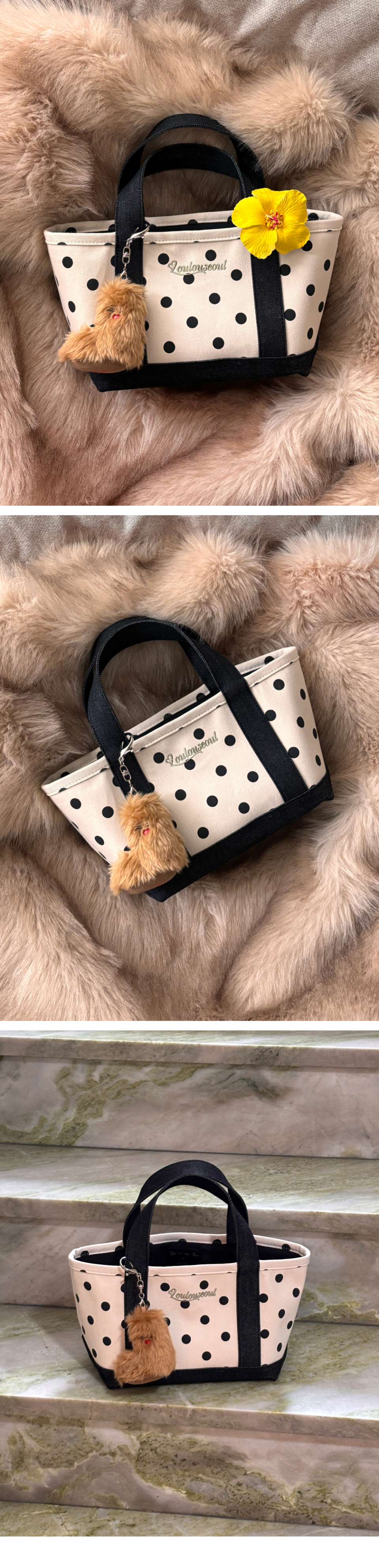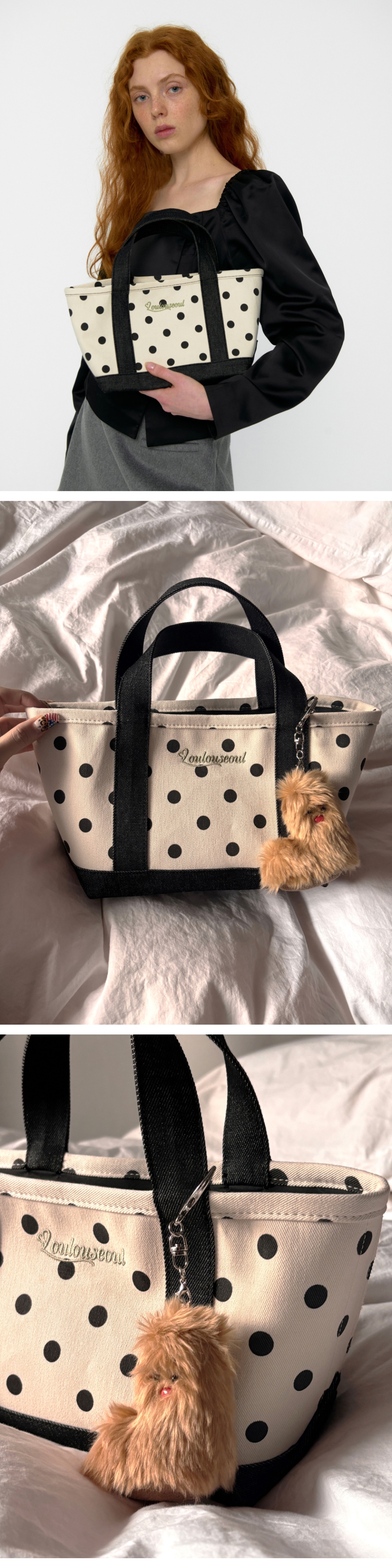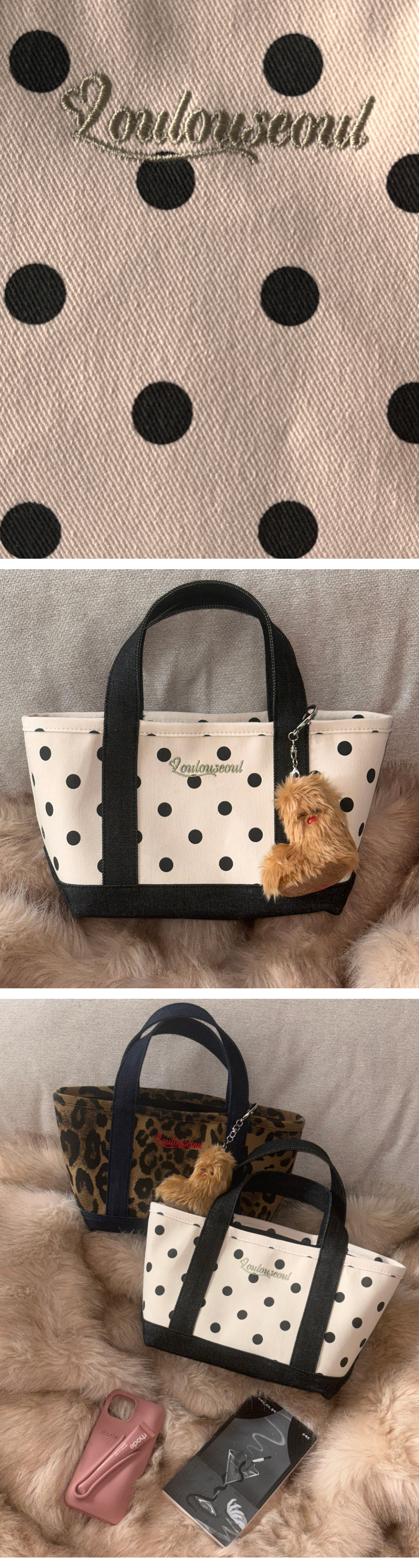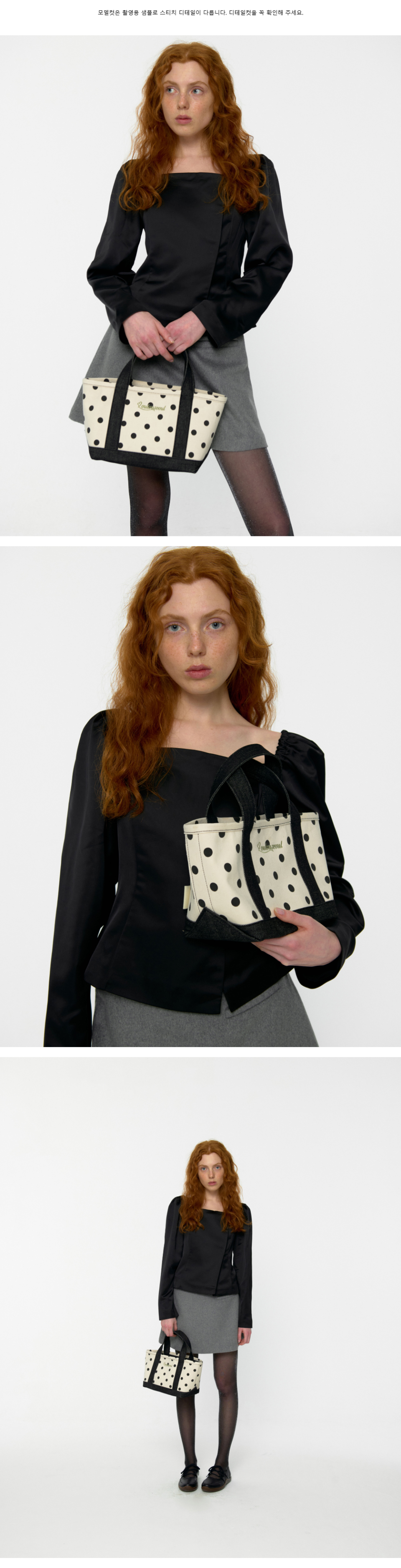 도트 패턴. 스트랩 직단 재단 포인트.
