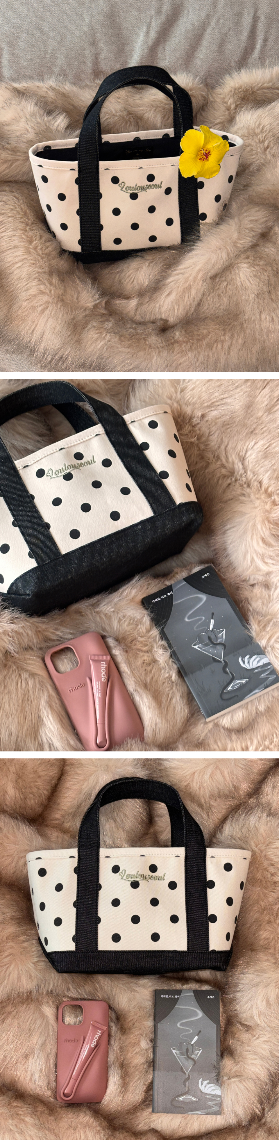 두께감 있는 캔버스 원단의 미니 토트백입니다.