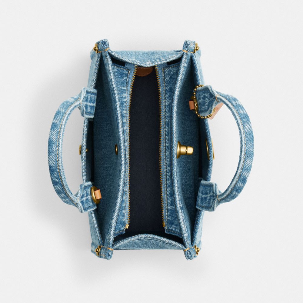가벼운 카고 토트에 원하는 만큼 많은 (혹은 적은) 소지품을 수납해 보세요. 코치 필기체 자수와 아이코닉한 턴락 잠금 디테일이 돋보이는 이 앙증맞은 20 사이즈는 핸드폰을 수납할 수 있는 내부 오픈 수납칸, 수납이 용이한 외부 포켓 2개, 숄더 백 또는 크로스바디로 착용할 수 있는 분리형 웨빙 스트랩이 특징입니다. 이 활용도 높은 데님 스타일은 토지를 유지 및 활성화하고, 생물학적 다양성과 토양 건강성을 증진하며, 탄소 흡수를 증가시키는데 도움이 되는 재생 농업 관행을 도입한 농장들로부터 공급받은 면 100%*로 제작됐습니다. 이는 환경에 미치는 영향을 줄이고자 하는 우리의 지속적인 약속을 보여줍니다. 이제 어디를 가든 이 가방과 함께라면 지구를 위한 작은 사랑을 실천할 수 있습니다.