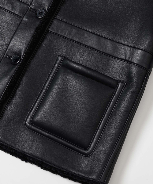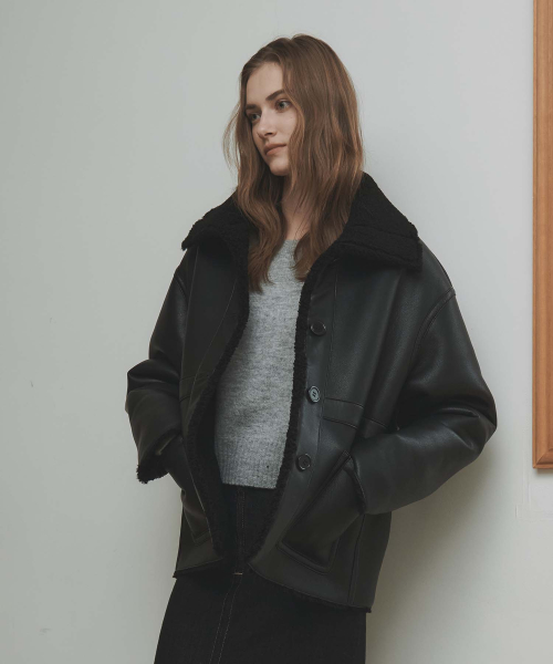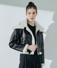 더블 칼라 크롭 무스탕 자켓 [블랙]