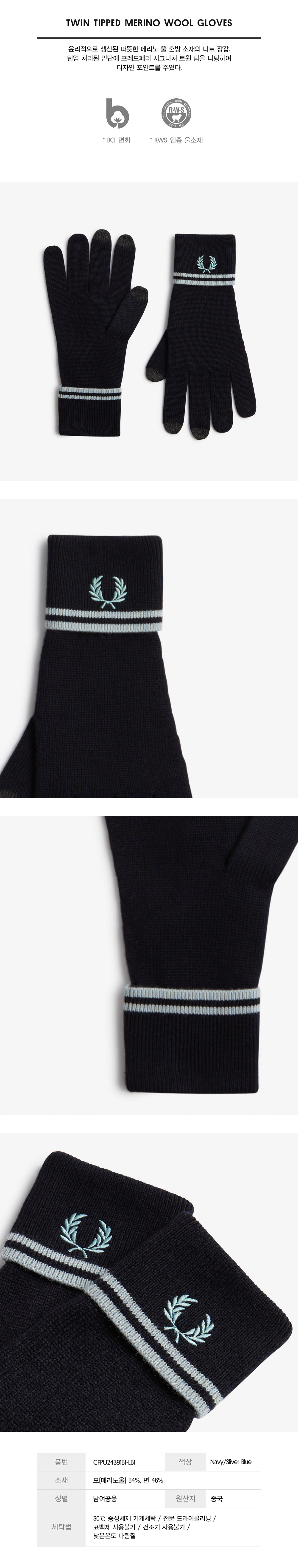 트윈 팁 메리노울 글러브 - 네이비/실버블루 CFPU2439151-L51