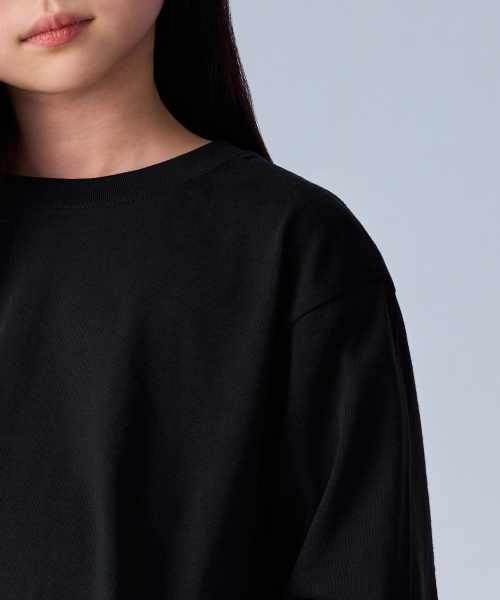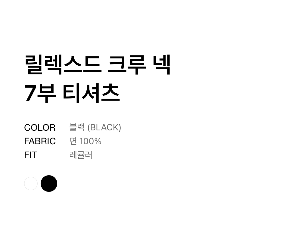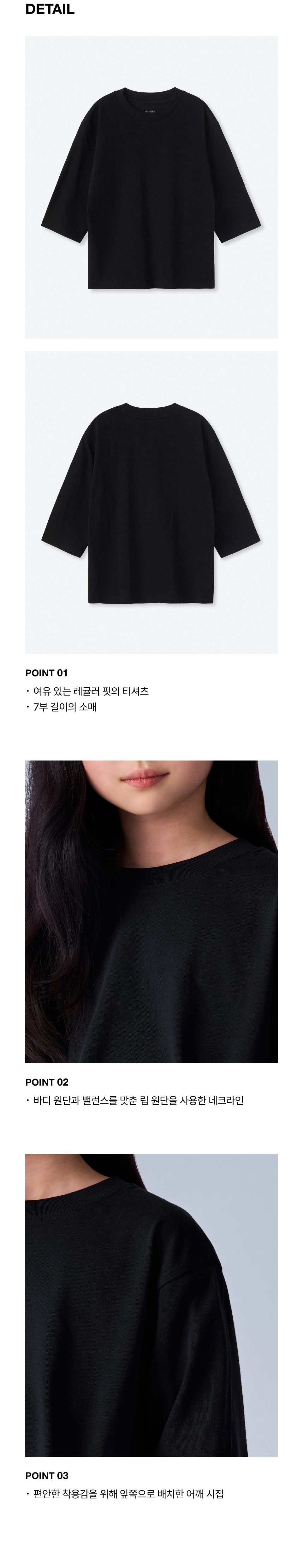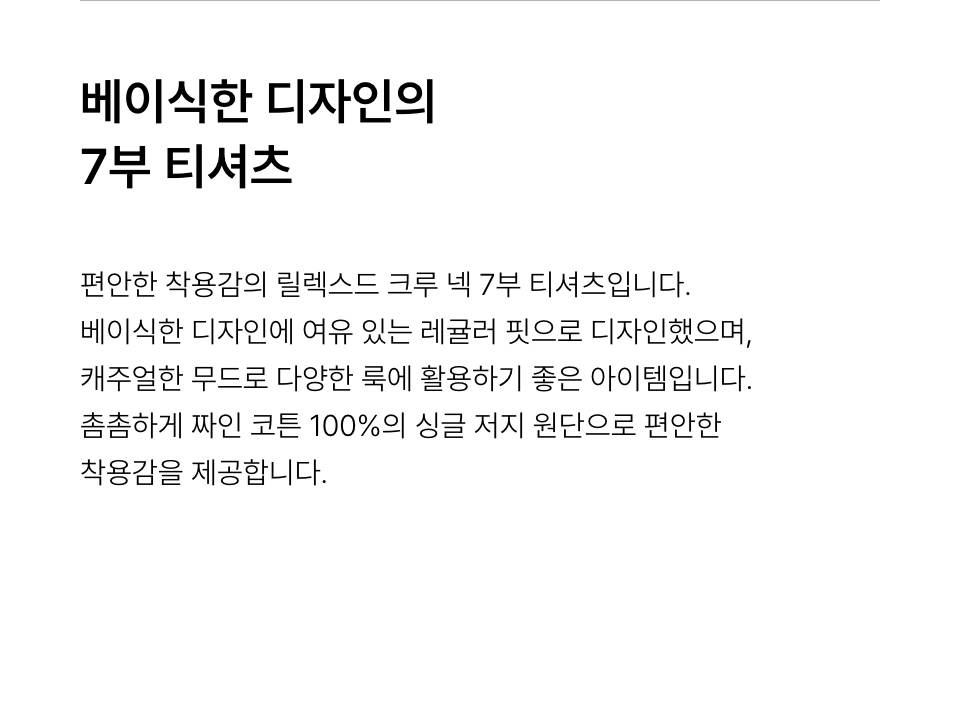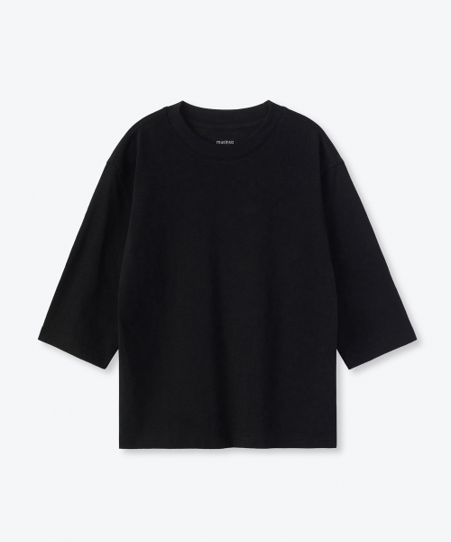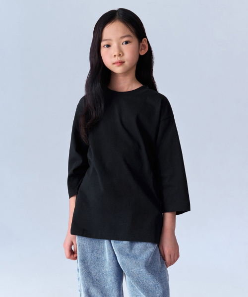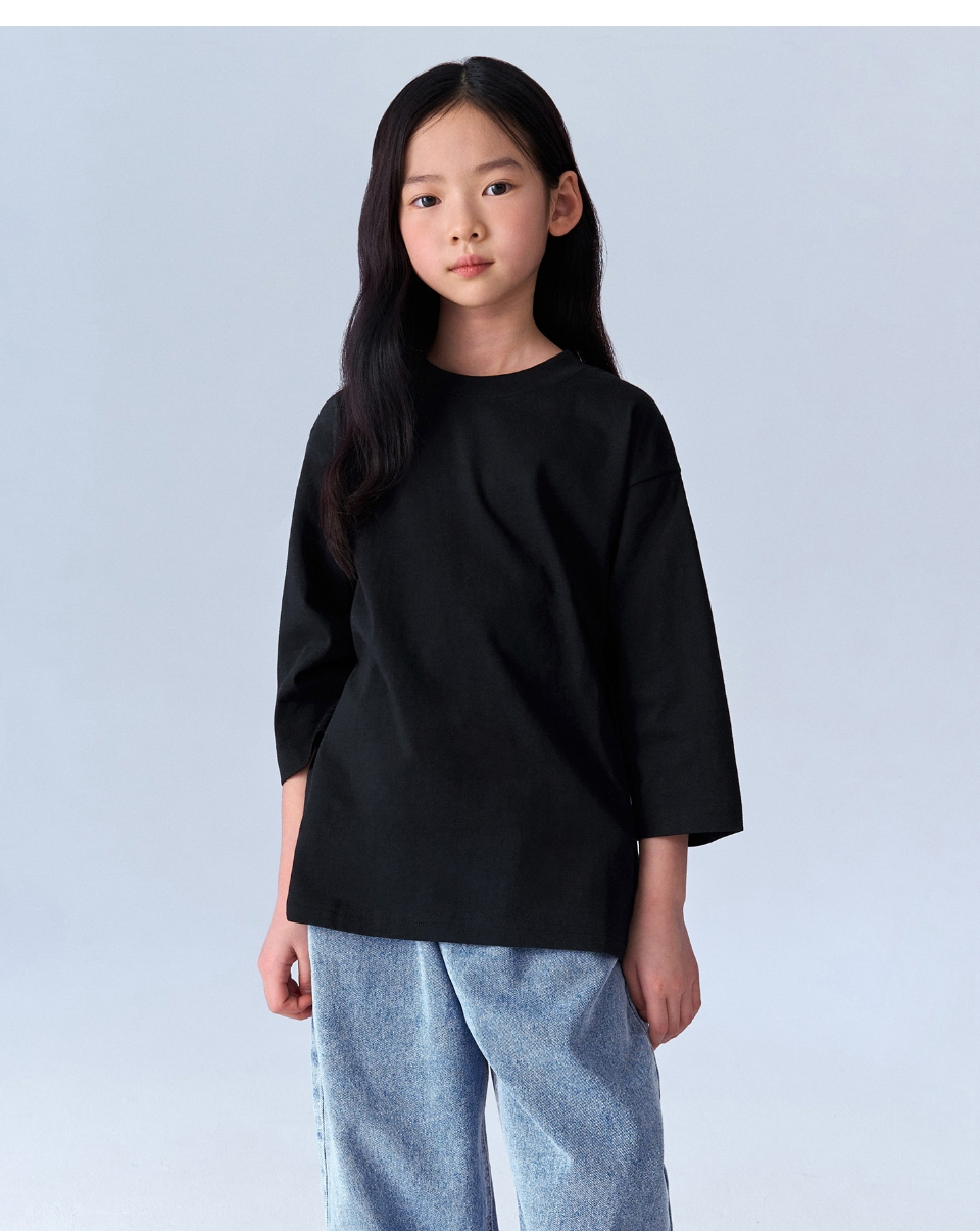 릴렉스드 크루 넥 7부 티셔츠 [블랙]
