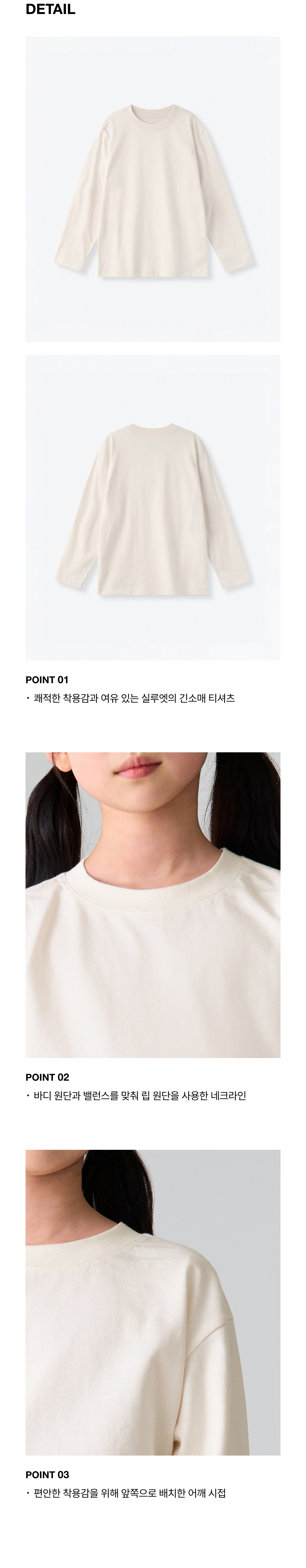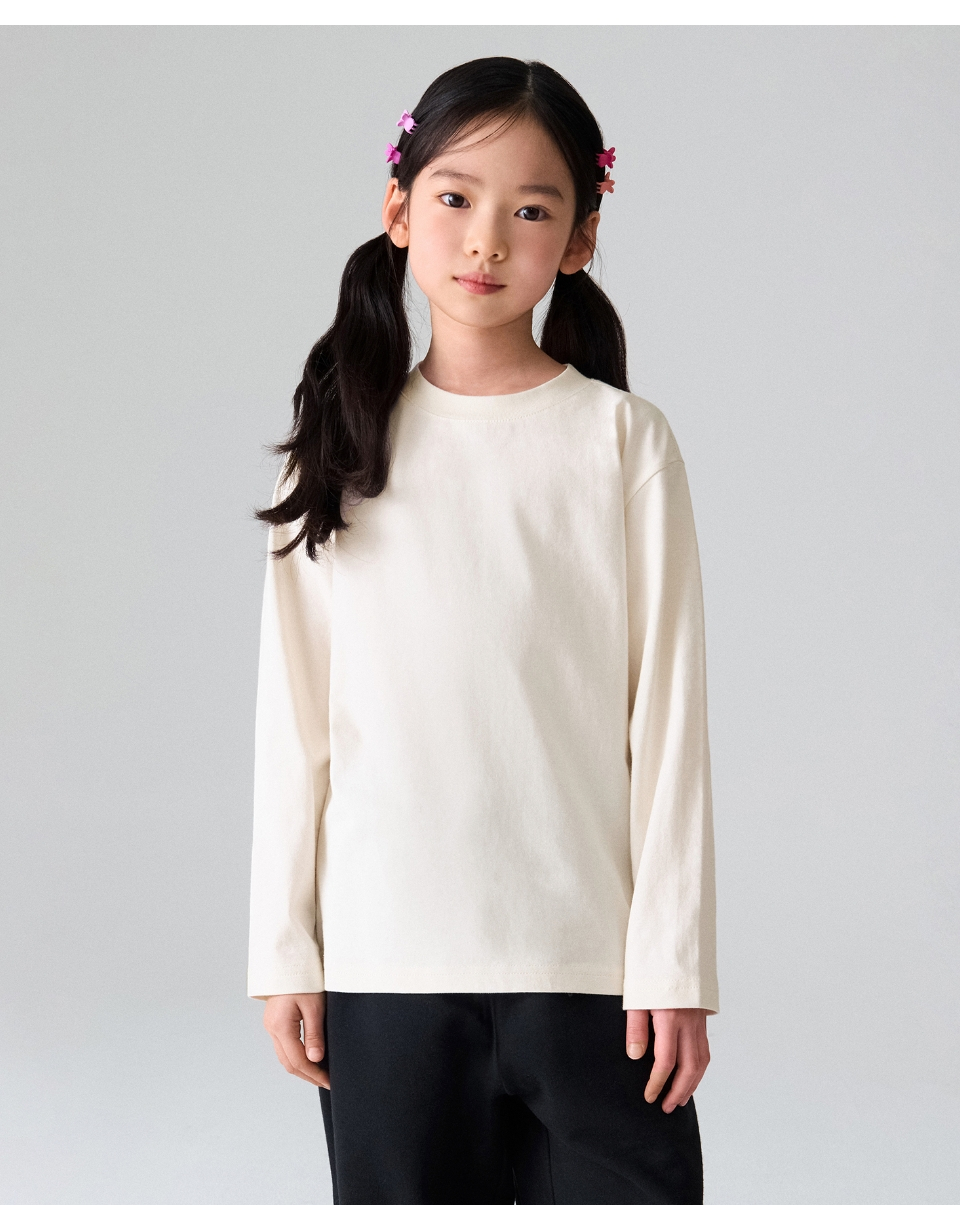 [쿨탠다드] 릴렉스드 크루 넥 긴소매 티셔츠 [크림]
