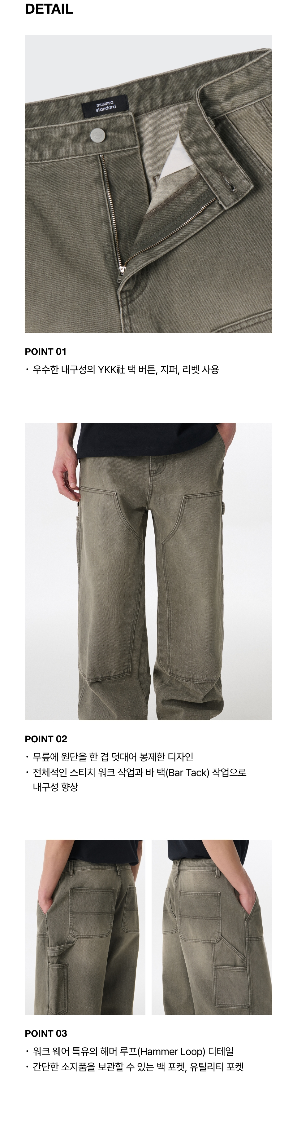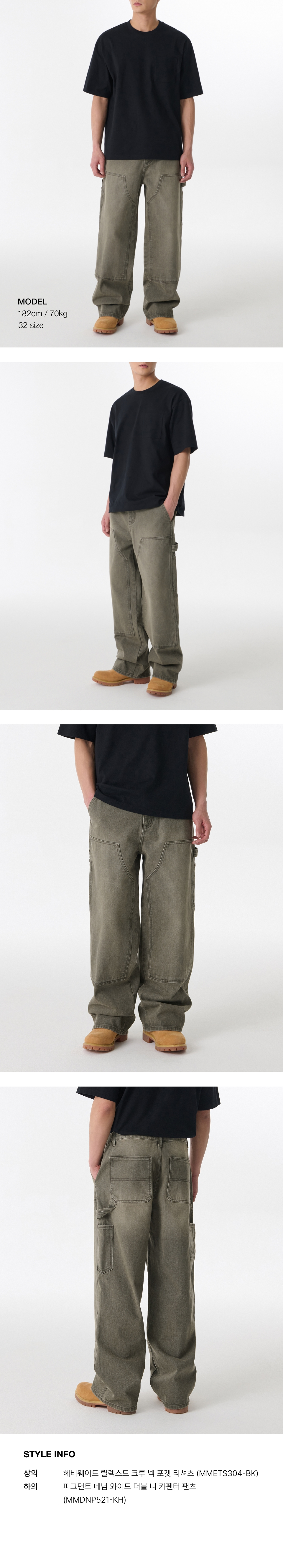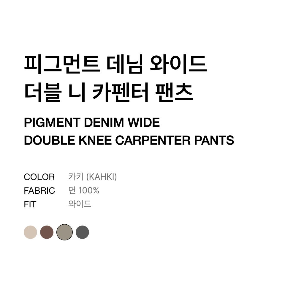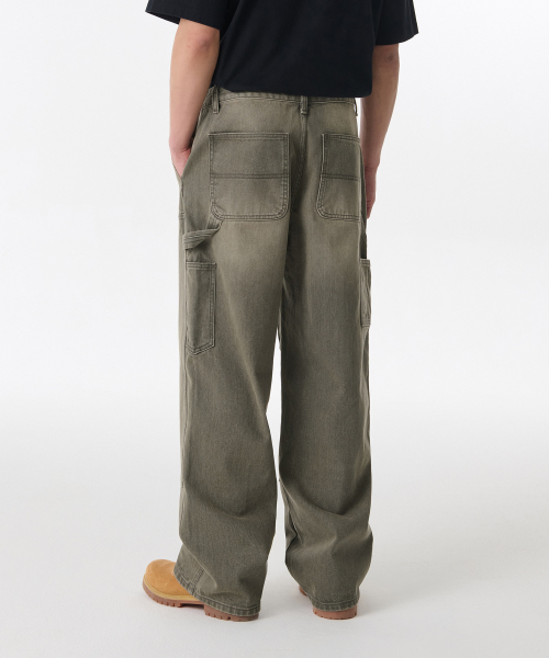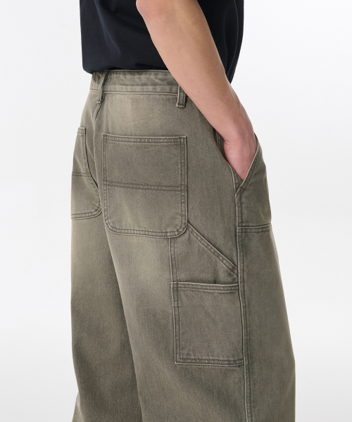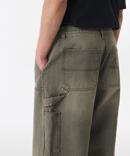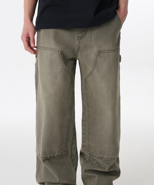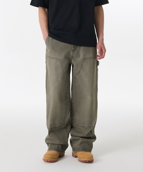 피그먼트 데님 와이드 더블 니 카펜터 팬츠 [카키]