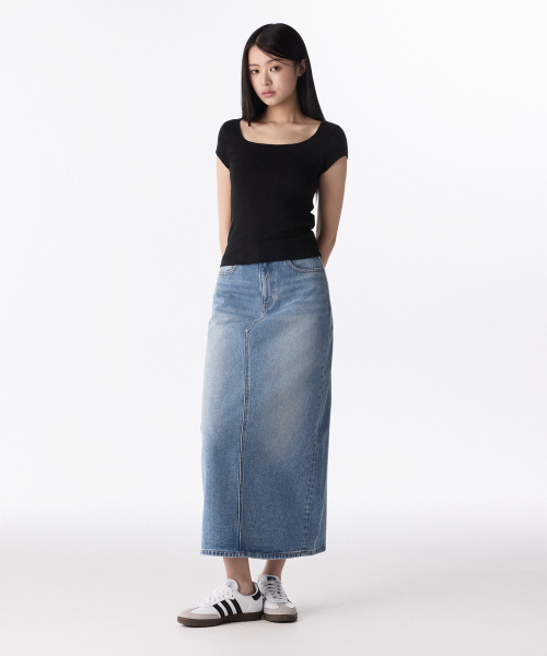 우먼즈 데님 맥시 스커트 [라이트 인디고]