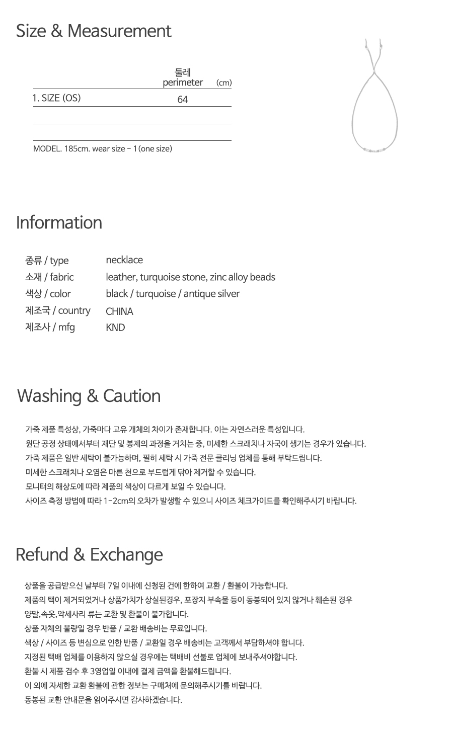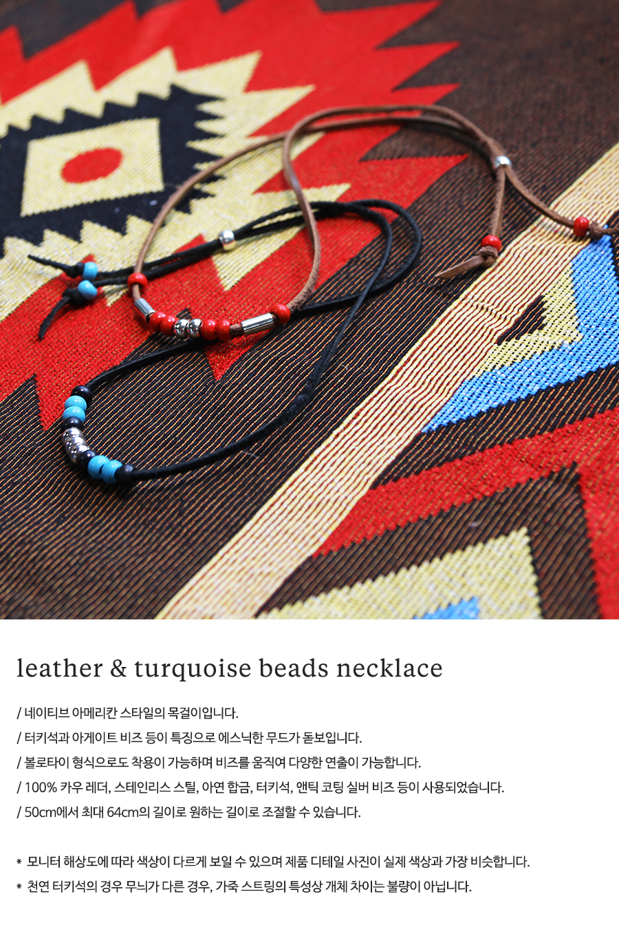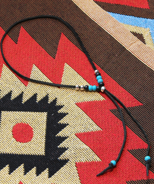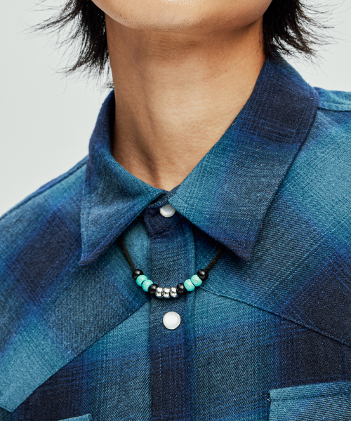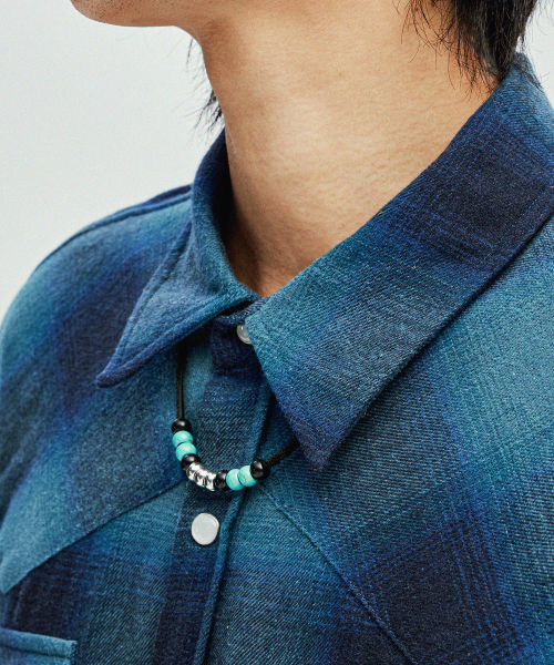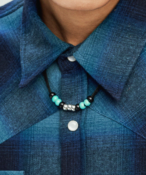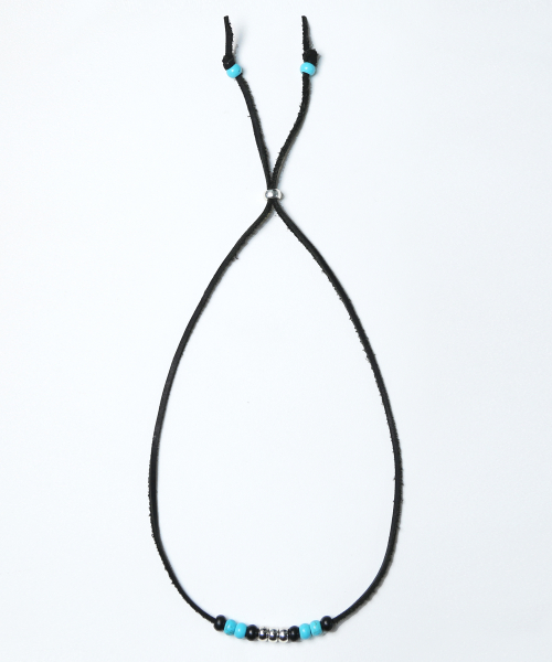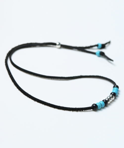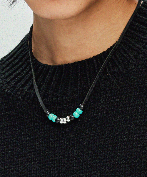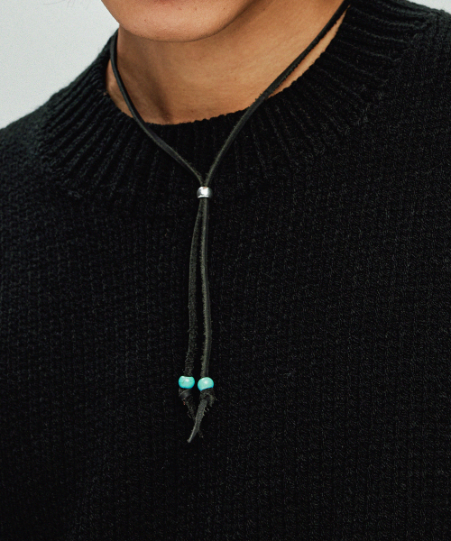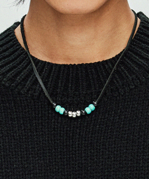 레더 & 터키석 비즈 목걸이 블랙