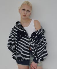 디어 아플리케 후드 집업 (네이비 스트라이프)
