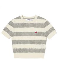 스몰 체리 케이블 크롭 숏 슬리브 니트 [아이보리]