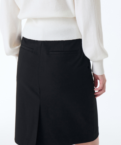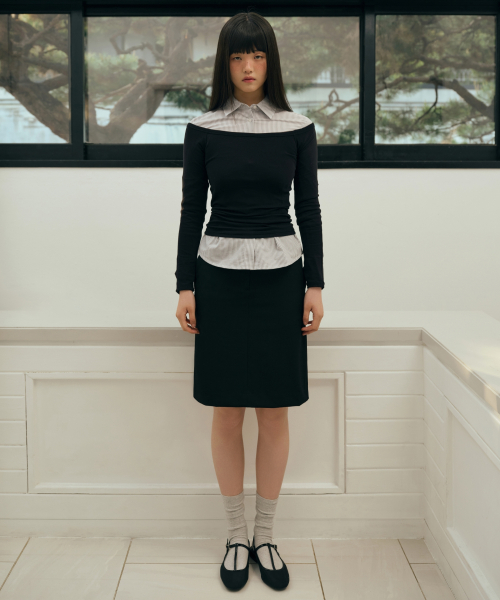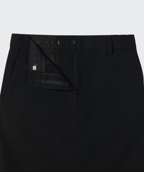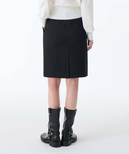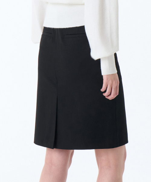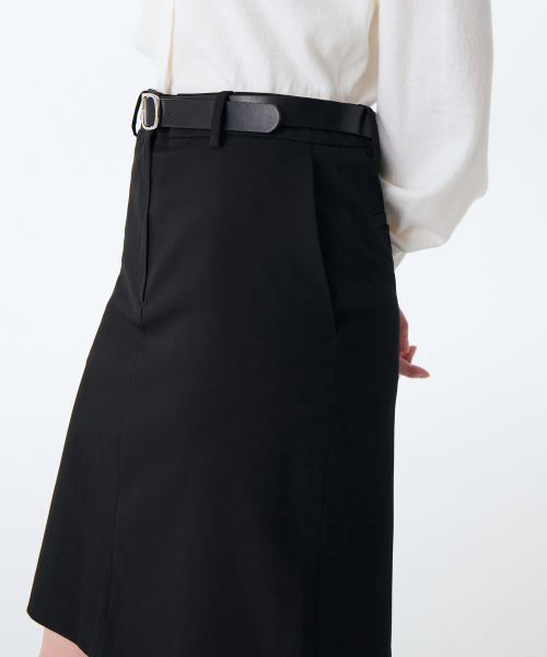 우먼즈 로 웨이스트 니 렝스 스커트 [블랙]