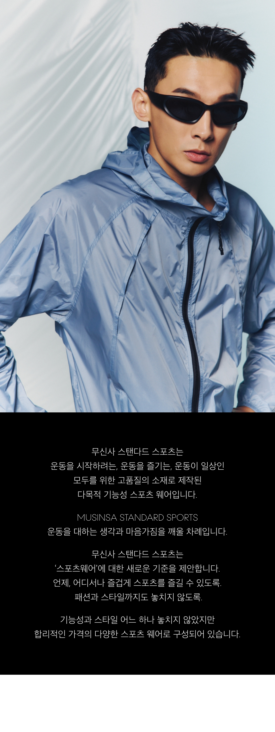 무신사 스탠다드 스포츠(MUSINSA STANDARD SPORTS)는 스포츠를 즐기는 고객을 위한 전문화된 소재와 기능성의 상품을 제공하는 기능성 스포츠 웨어 라인입니다. 일상에서 다목적 스포츠 활동을 즐기며 멀티 활용이 용이하도록 필요한 기능만을 탑재한 우수한 품질의 상품을 지향합니다.