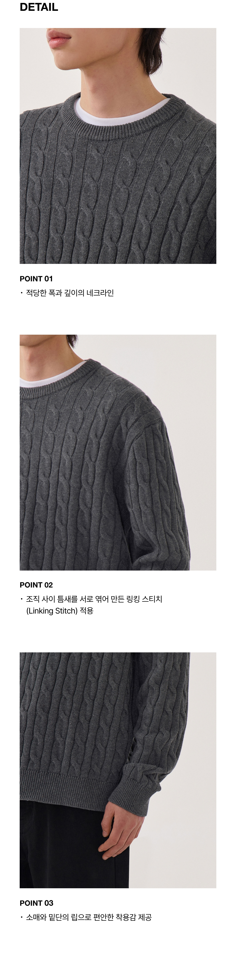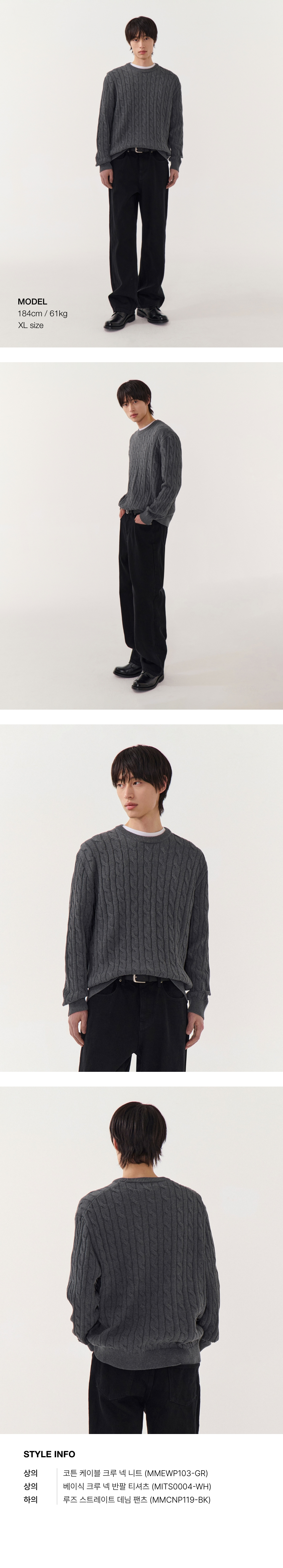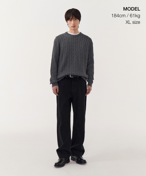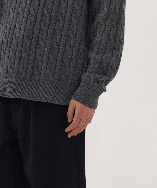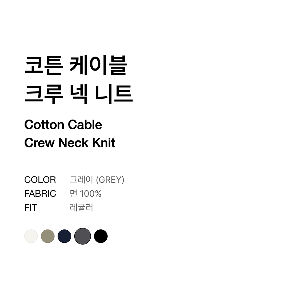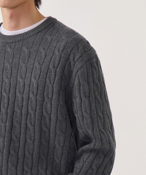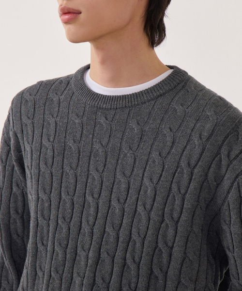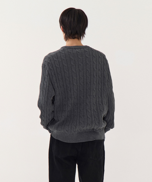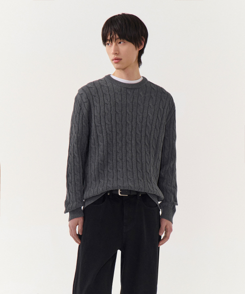 코튼 케이블 크루 넥 니트 [그레이]