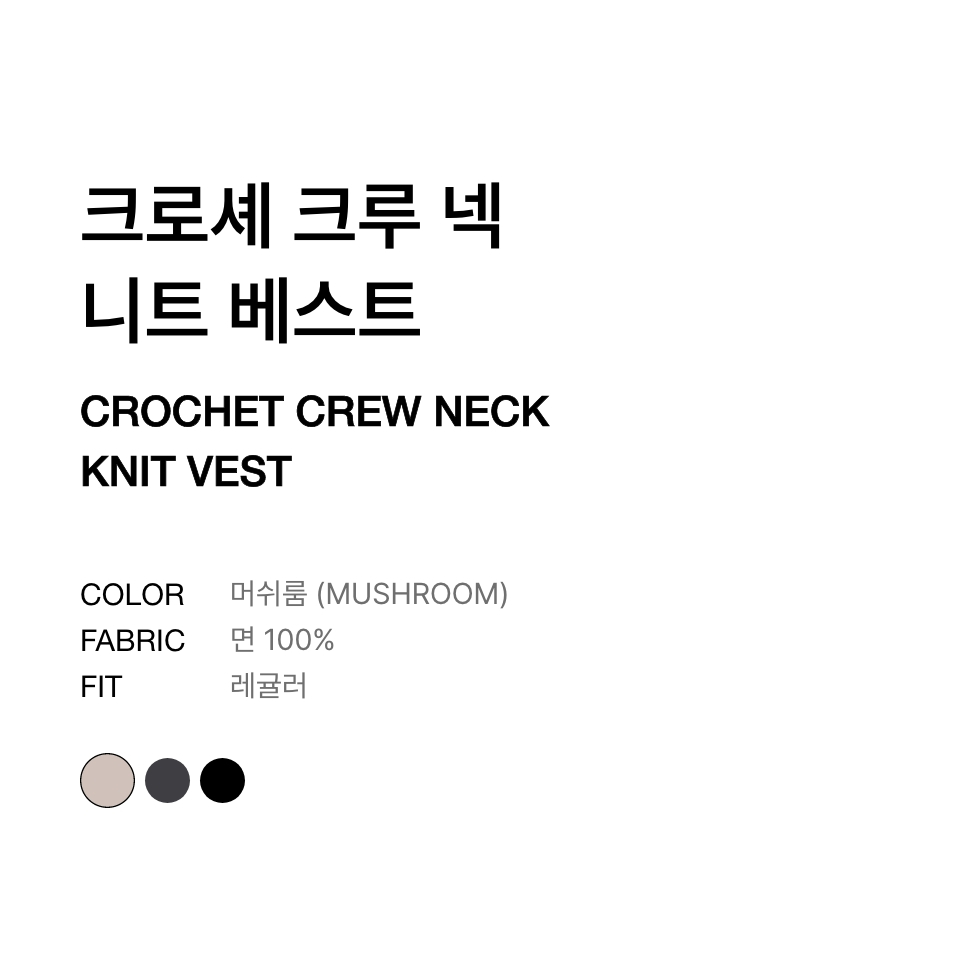 크로셰 크루 넥 니트 베스트 [머쉬룸]