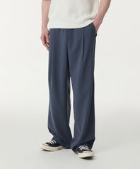 린넨 라이크 원 턱 와이드 밴딩 팬츠 [블루 그레이]