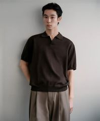 워셔블 수피마 코튼 슬릿 넥 니티드 폴로 셔츠 [브라운]